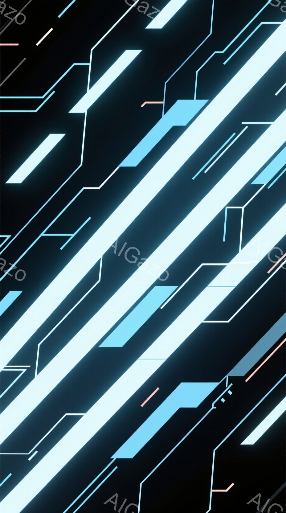 鮮やかなネオンカラーのラインが、黒い背景を斜めに走り抜けています。ラインは青やオレンジ色で構成され、未来的な回路や光の軌跡を思わせるデザインとなっています。全体として、スピード感とテクノロジーを感じさせる抽象的なビジュアルです。