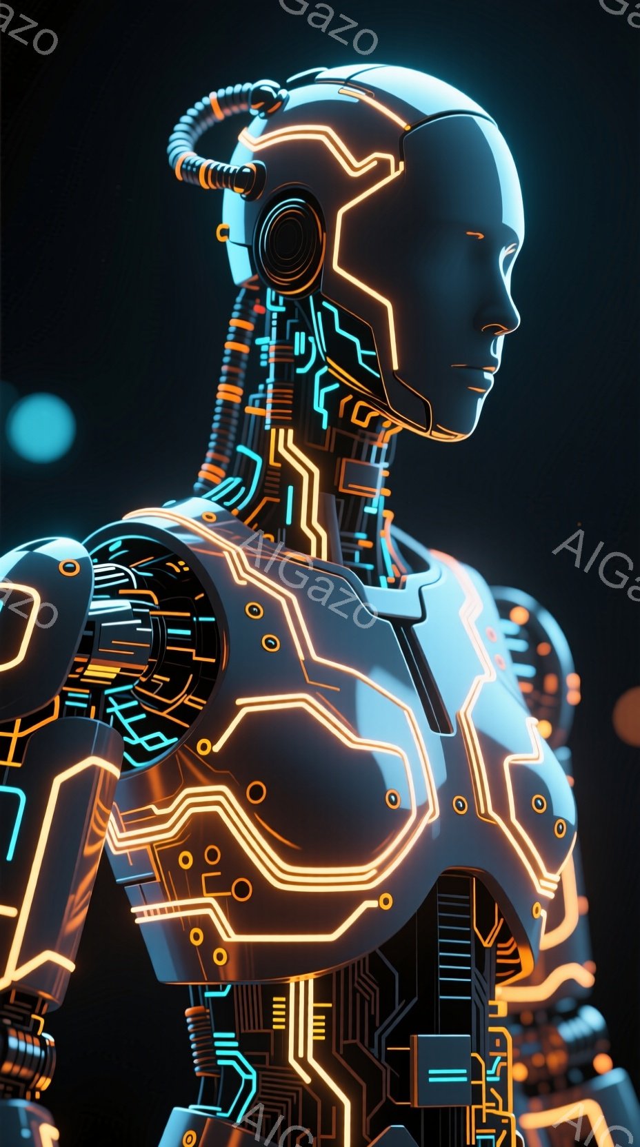 この無料AI生成画像「この画像は、未来的なサイバーパンク風の女性ロボットを描いています。彼女の体は光る青とオレンジのラインで構成された複雑な回路で覆われ、まるで内部構造が可視化されたかのような印象を与えます。ポーズは横向きで、未来的な技術と人体構造の融合を強調し、クールで神秘的な雰囲気を醸し出しています。」は、2025年11月15日に作成されました。 サイズは 928×1664px の高解像度で、商用利用も可能なフリー素材として提供しています。