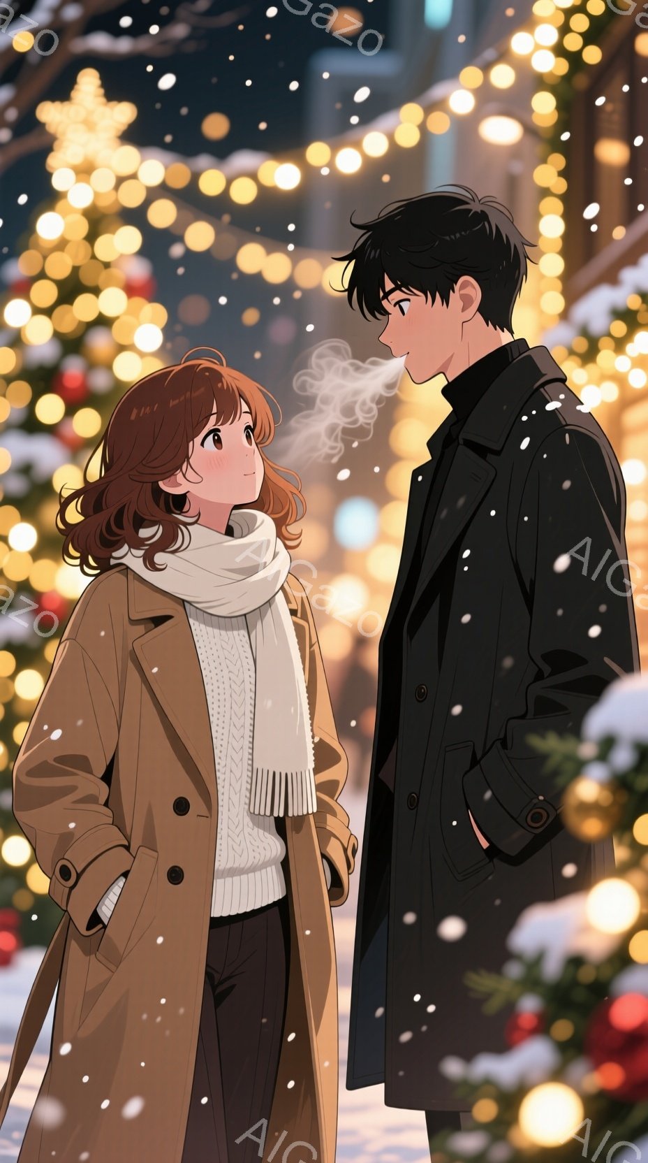 この無料AI生成画像「雪が降る駅のホームで、二人のキャラクターが手を握り合っている。女性は長い茶色の髪と赤いマフラーを身につけ、驚いた表情をしている。男性は黒い髪で、青いコートとグレーのスカーフを着ており、女性の手を握り返している。背景には駅の建物があり、雪が積もっている。空気は寒く、雪が降っている。」は、2025年11月16日に作成されました。 サイズは 928×1664px の高解像度で、商用利用も可能なフリー素材として提供しています。