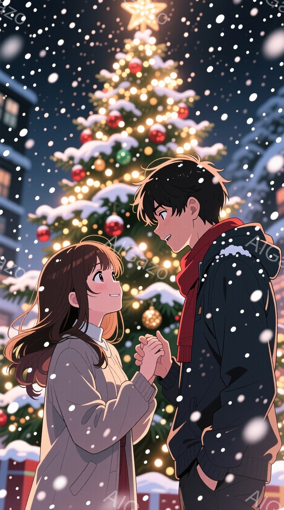 この無料AI生成画像「雪が降る冬の街角で、カップルが抱き合っている様子が描かれています。男性は黒いコートを着ており、女性は茶色のコートと赤いスカーフを身にまとい、雪が降る中で笑顔を見せる表情です。背景には街灯が点灯し、暖かい光が散りばめられています。建物は木造で、雪が積もった木々が見えます。」は、2025年11月16日に作成されました。 サイズは 928×1664px の高解像度で、商用利用も可能なフリー素材として提供しています。