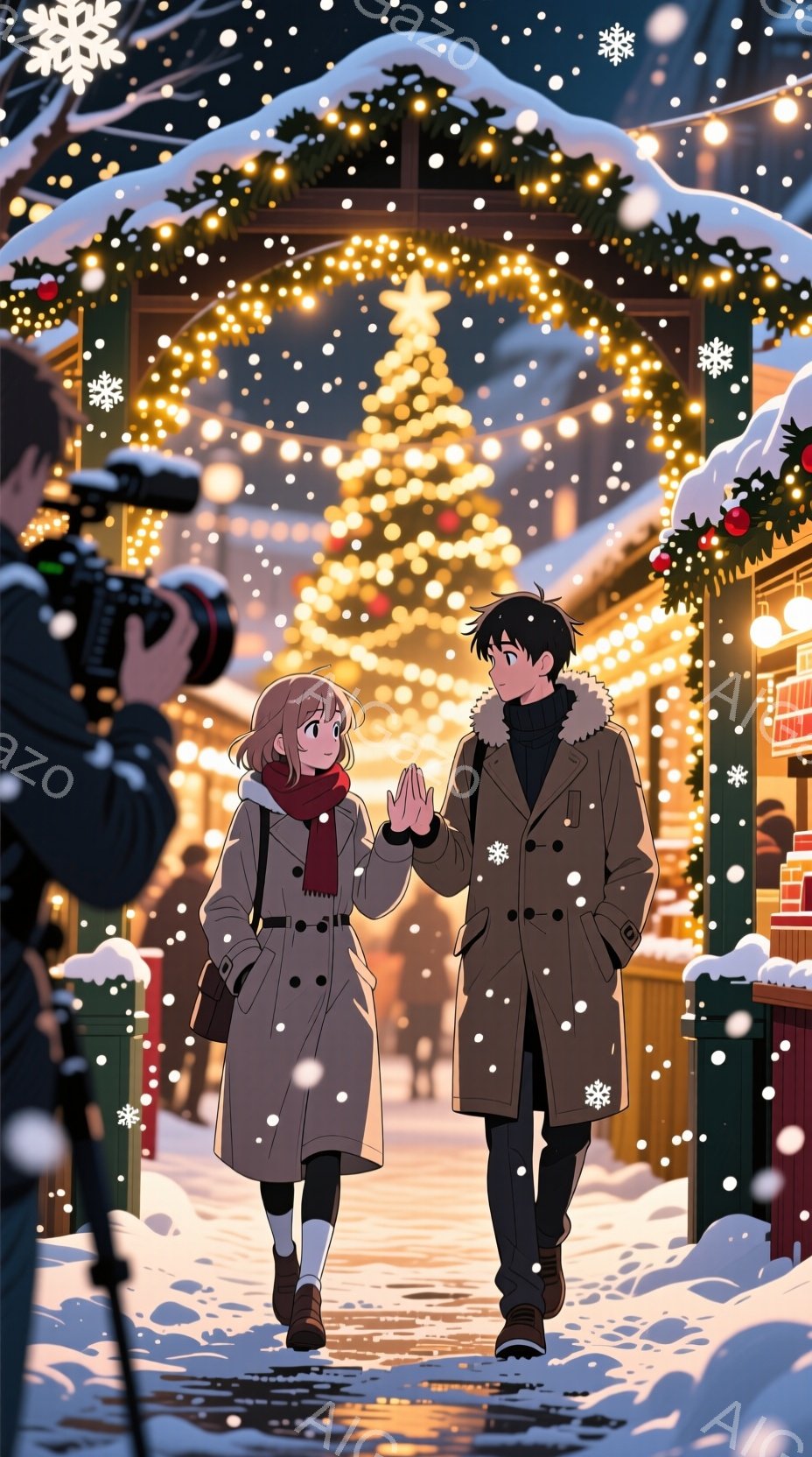 この無料AI生成画像「雪が降る通りで、二人の若者が会話をしている様子が描かれています。女性は茶色の髪で、赤いスカーフを巻き、茶色のコートを着ています。男性は黒い髪で、茶色のジャケットを着ており、彼は女性にプレゼントを渡そうとしています。背景には雪に覆われた木々と、暖かい光を放つ街灯が見えます。」は、2025年11月16日に作成されました。 サイズは 928×1664px の高解像度で、商用利用も可能なフリー素材として提供しています。