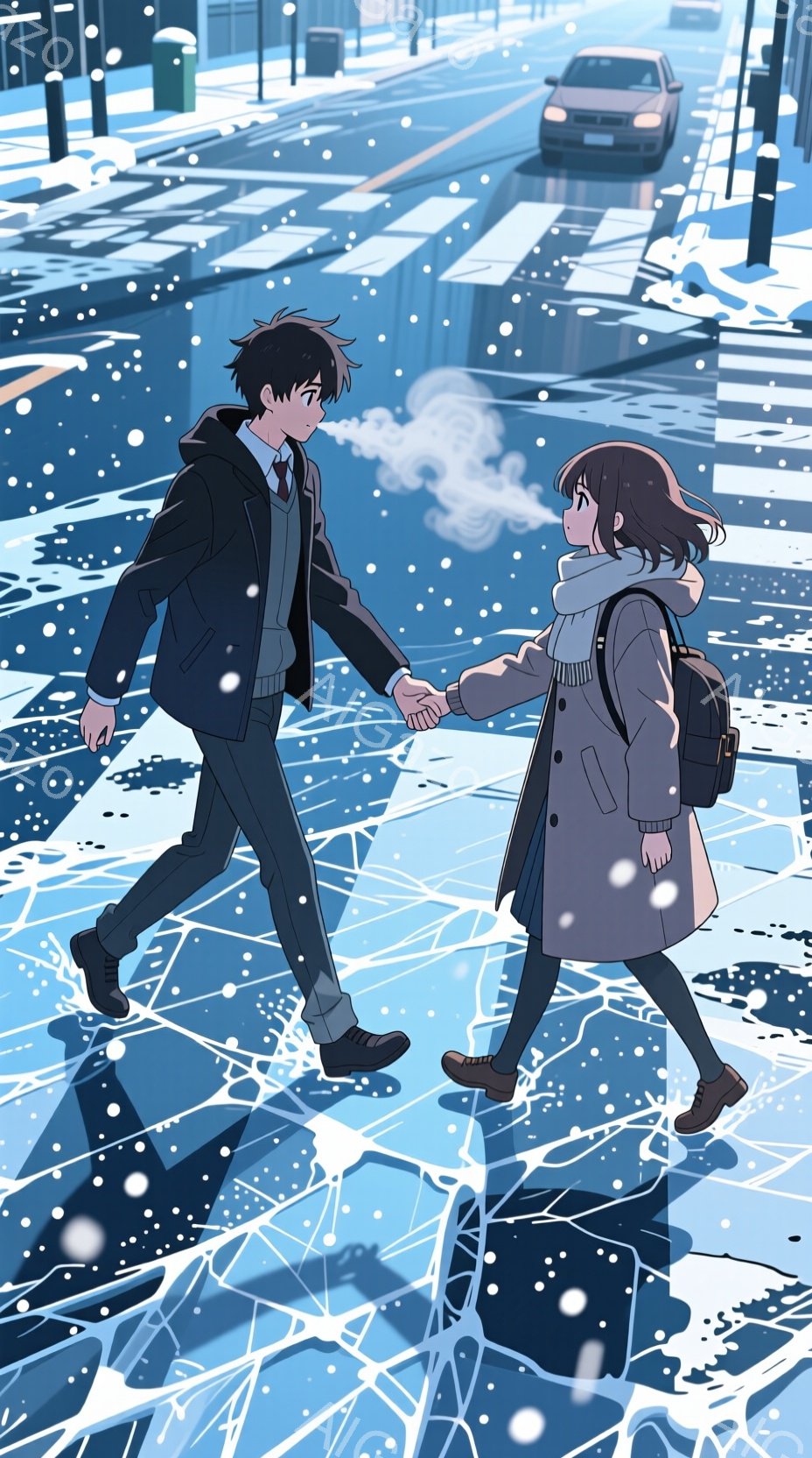 この無料AI生成画像「二人のキャラクターがベンチに座っているシーンです。女性は紫色のジャケットと青いスカーフを着ており、男性は黒いジャケットと茶色のスカーフを着ています。女性は座っており、男性は立っています。二人は互いに指を触れ合い、微笑んでいるように見えます。背景には雪が積もった木々と建物があり、夕日が空に広がっています。」は、2025年11月16日に作成されました。 サイズは 928×1664px の高解像度で、商用利用も可能なフリー素材として提供しています。