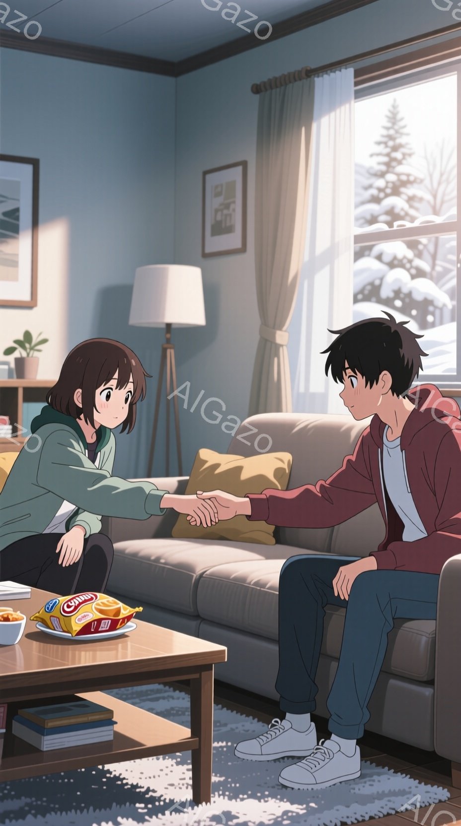 この無料AI生成画像「二人の学生が図書館で本を読んでいる様子が描かれています。女性は茶色の髪で、白いブラウスに赤いリボンをつけており、男性は黒髪で、茶色のジャケットを着ています。二人とも本を指さし、話している様子です。背景には雪が降る窓があり、外は冬の景色です。」は、2025年11月16日に作成されました。 サイズは 928×1664px の高解像度で、商用利用も可能なフリー素材として提供しています。