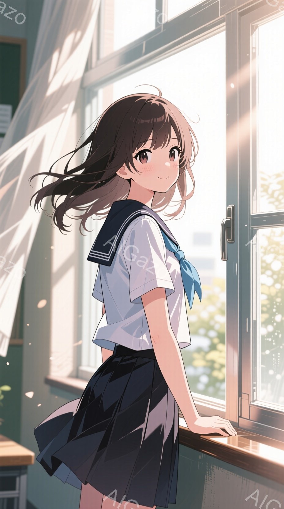 この無料AI生成画像「茶髪の少女が窓辺に立っており、制服を着ています。彼女は窓枠に手を添え、外の緑豊かな景色を見つめており、やや微笑んだ表情を浮かべています。背景には、明るい日差しが差し込む木々が見え、穏やかで暖かい雰囲気を醸し出しています。」は、2025年11月18日に作成されました。 サイズは 928×1664px の高解像度で、商用利用も可能なフリー素材として提供しています。