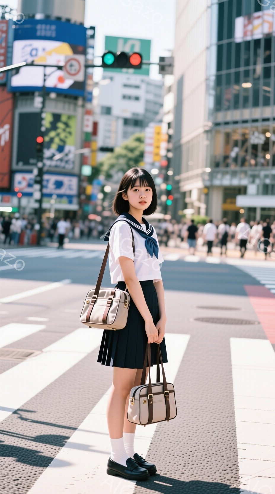 この無料AI生成画像「制服を着た若い女性が、ニューヨークの道路を横断歩道で歩いています。彼女は白いブラウス、濃い色のプリーツスカート、白い靴下、黒い靴を履き、肩にリュックサックを背負っています。背景には高層ビルが立ち並び、晴天の下、活気のある都会の雰囲気が漂っています。」は、2025年11月18日に作成されました。 サイズは 928×1664px の高解像度で、商用利用も可能なフリー素材として提供しています。