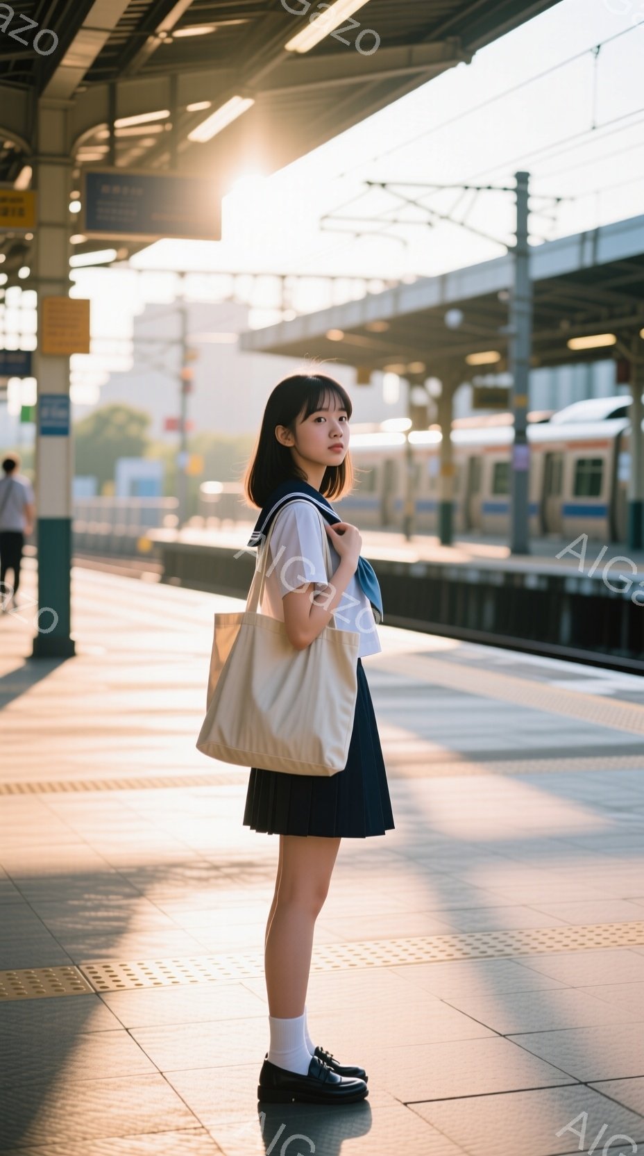 この無料AI生成画像「制服を着た女子高生が、バス停でスマートフォンを見下ろしています。紺色のスカートと白いブラウス、そしてリボンが特徴的な制服を着ており、黒いリュックサックを背負っています。背景にはバスと道路、そして緑豊かな木々が見え、晴れた日の穏やかな雰囲気が伝わってきます。」は、2025年11月18日に作成されました。 サイズは 928×1664px の高解像度で、商用利用も可能なフリー素材として提供しています。
