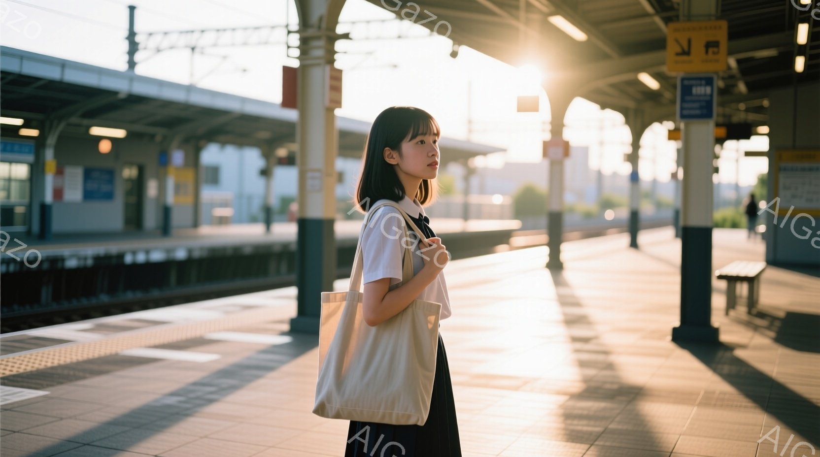 この無料AI生成画像「制服姿の女子学生が駅のホームに立っている。彼女は短い黒髪で、顔色は少し憂いを帯びており、どこか遠くを見つめている。背景には電車と駅の構造物が見え、少し曇り空の下、静かで落ち着いた雰囲気が漂っている。」は、2025年11月18日に作成されました。 サイズは 1664×928px の高解像度で、商用利用も可能なフリー素材として提供しています。