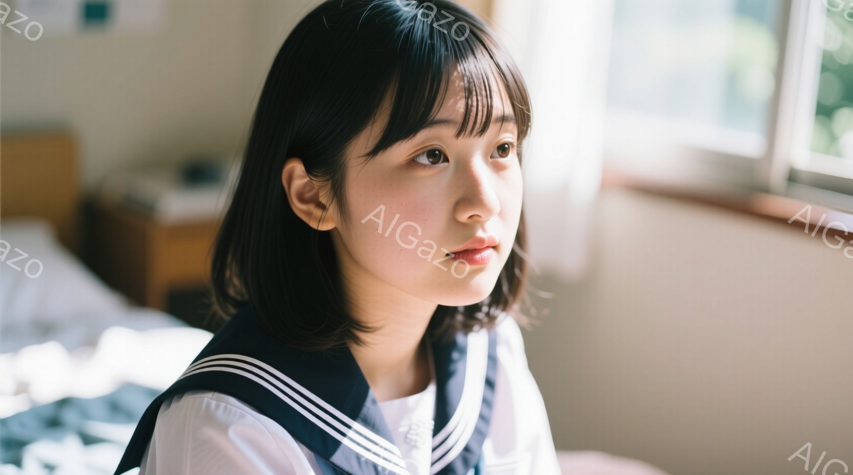 この無料AI生成画像「長い茶色の髪をサイドで少しおろした若い女性が、窓枠に座って外を見つめている。白いTシャツとジーンズ姿で、穏やかで物憂げな表情を浮かべている。背景には緑豊かな木々が見え、窓枠は少し古びており、全体的にノスタルジックで静謐な雰囲気が漂っている。」は、2025年11月18日に作成されました。 サイズは 1664×928px の高解像度で、商用利用も可能なフリー素材として提供しています。