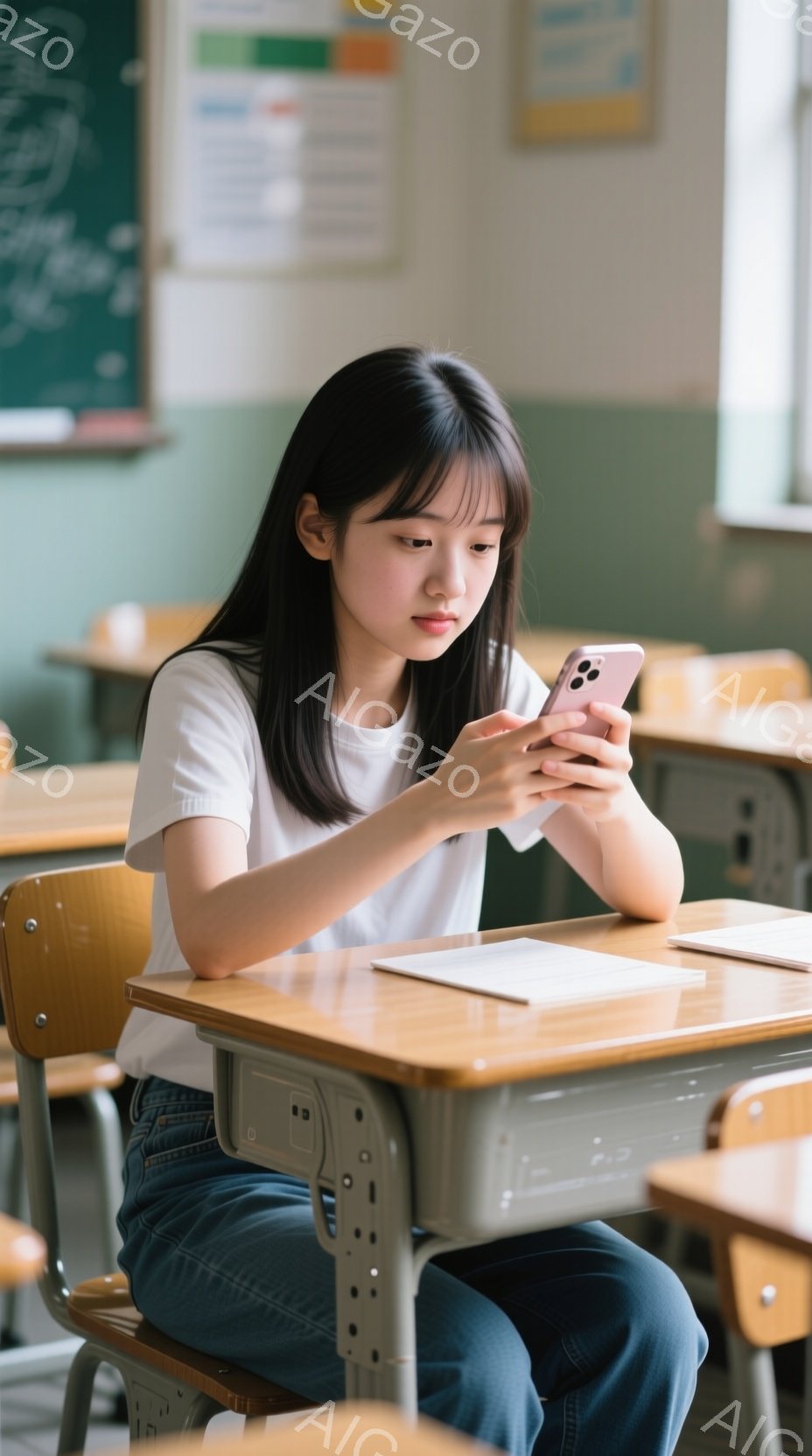 この無料AI生成画像「制服を着た女子学生が、教室の窓際に座って勉強しています。彼女は黒髪のショートボブで、集中した表情でノートに何か書き込んでいます。背景には緑豊かな木々が見え、柔らかな光が差し込み、穏やかで落ち着いた雰囲気が漂っています。」は、2025年11月18日に作成されました。 サイズは 928×1664px の高解像度で、商用利用も可能なフリー素材として提供しています。
