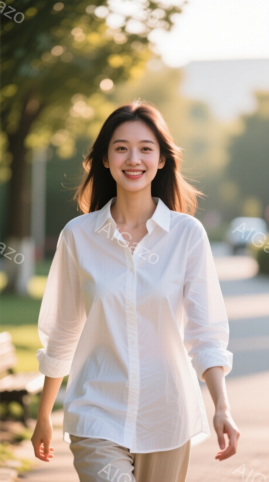 この無料AI生成画像「街中を歩く女性は、白いTシャツにベージュのオーバーサイズシャツ、そしてデニムジーンズと白いスニーカーを身に着けている。彼女はスマートフォンを見つめ、少し前かがみの姿勢で歩いている。背景には高層ビル群と、満開の桜並木が広がり、晴天の下、春らしい穏やかな雰囲気が漂っている。」は、2025年11月18日に作成されました。 サイズは 928×1664px の高解像度で、商用利用も可能なフリー素材として提供しています。