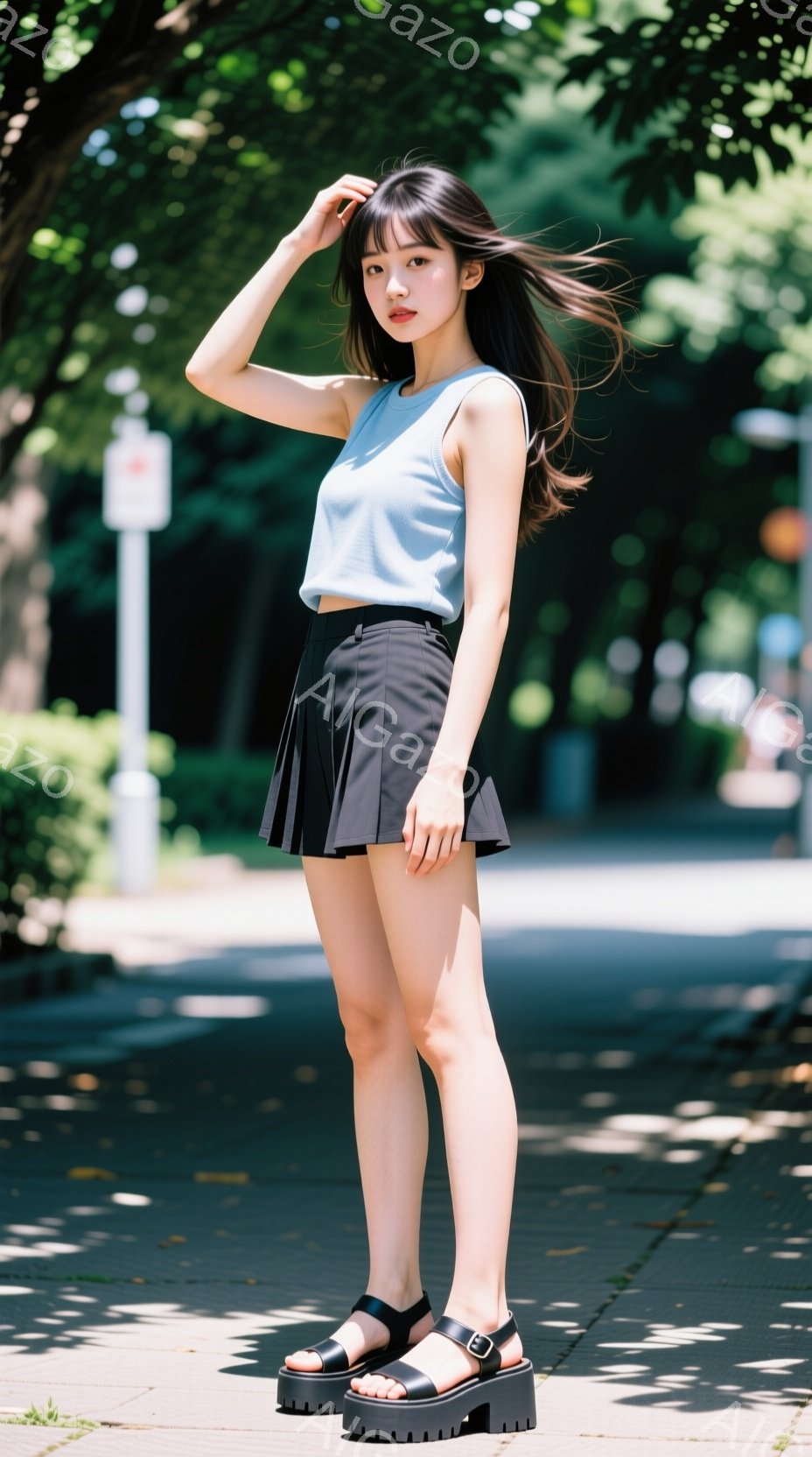 この無料AI生成画像「若い女性がストリートを歩いています。彼女は明るい色のトップスとフレアスカート、白いソックスとカラフルなスニーカーを着用し、サングラスとチョーカーをつけています。背景には建物や信号機が見え、晴れた日の活気あるストリートの雰囲気が漂っています。」は、2025年11月18日に作成されました。 サイズは 928×1664px の高解像度で、商用利用も可能なフリー素材として提供しています。