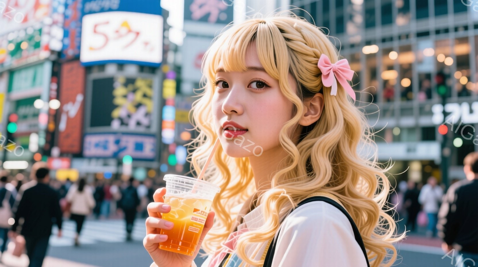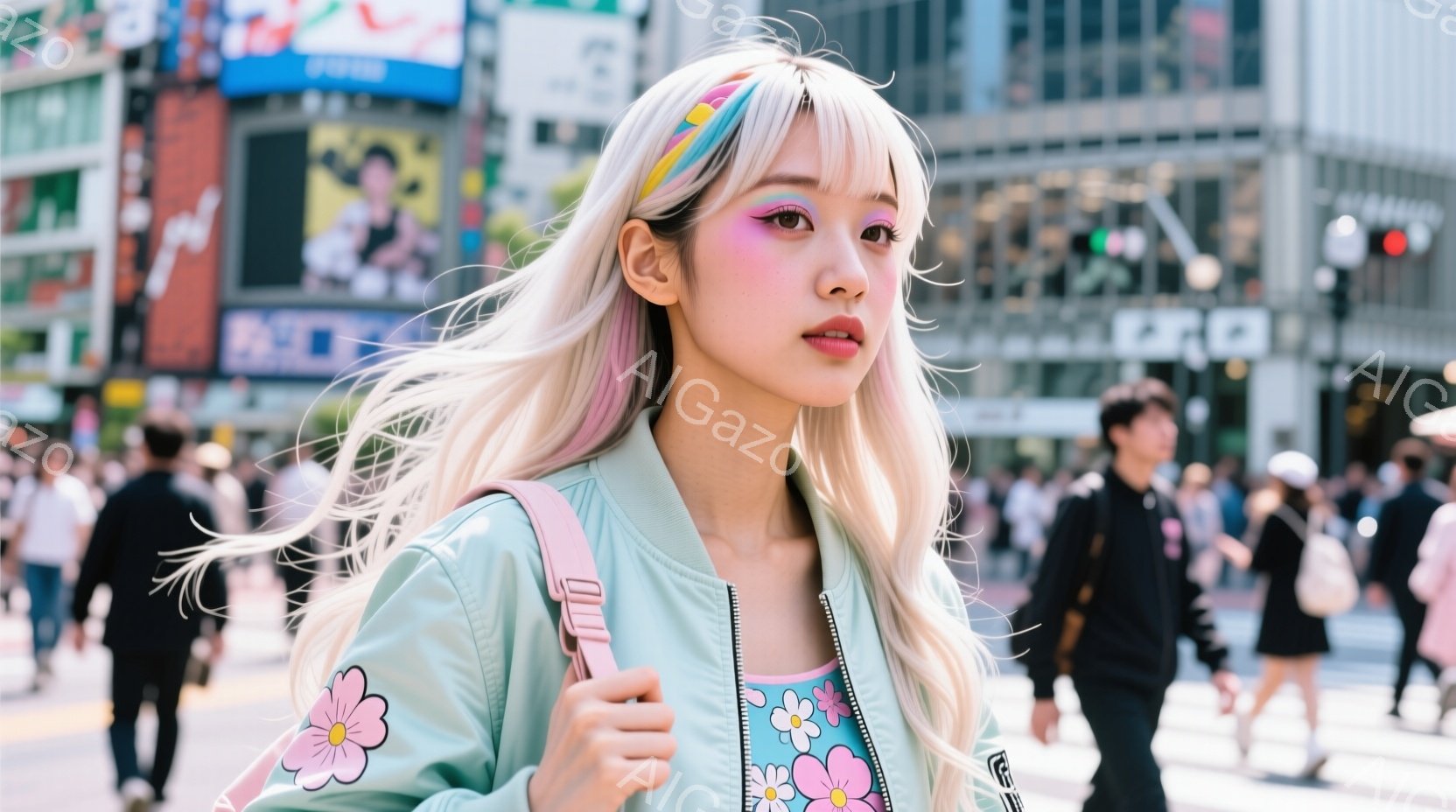 この無料AI生成画像「画像は、渋谷のスクランブル交差点の近くでポーズをとる若い女性を写しています。彼女は白いタンクトップに花柄のピンクのカーディガン、デニムのミニスカートを着用し、手にはバッグを持っています。背景には高層ビルや多くの歩行者がおり、晴天で賑やかな都会の雰囲気が漂っています。」は、2025年11月18日に作成されました。 サイズは 1664×928px の高解像度で、商用利用も可能なフリー素材として提供しています。