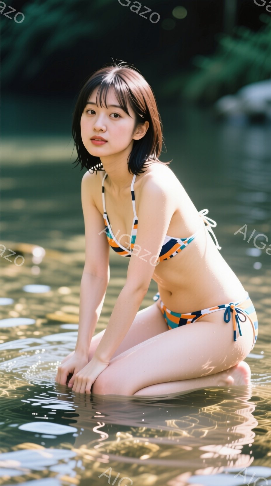 「鮮やかなストライプのビキニを着た女性が、岩にもたれて目を閉じています。彼女は少し顔を上げ、太陽の光を浴びているようです。背景には、青い海と白い砂浜が広がり、晴れ」は、2025年11月25日に作成されたAI生成画像です。 ストライプをテーマとした高品質なビジュアル素材で、 928×1664px の解像度で提供しています。 個人利用・商用利用ともに無料でダウンロード可能で、クレジット表記も不要です。