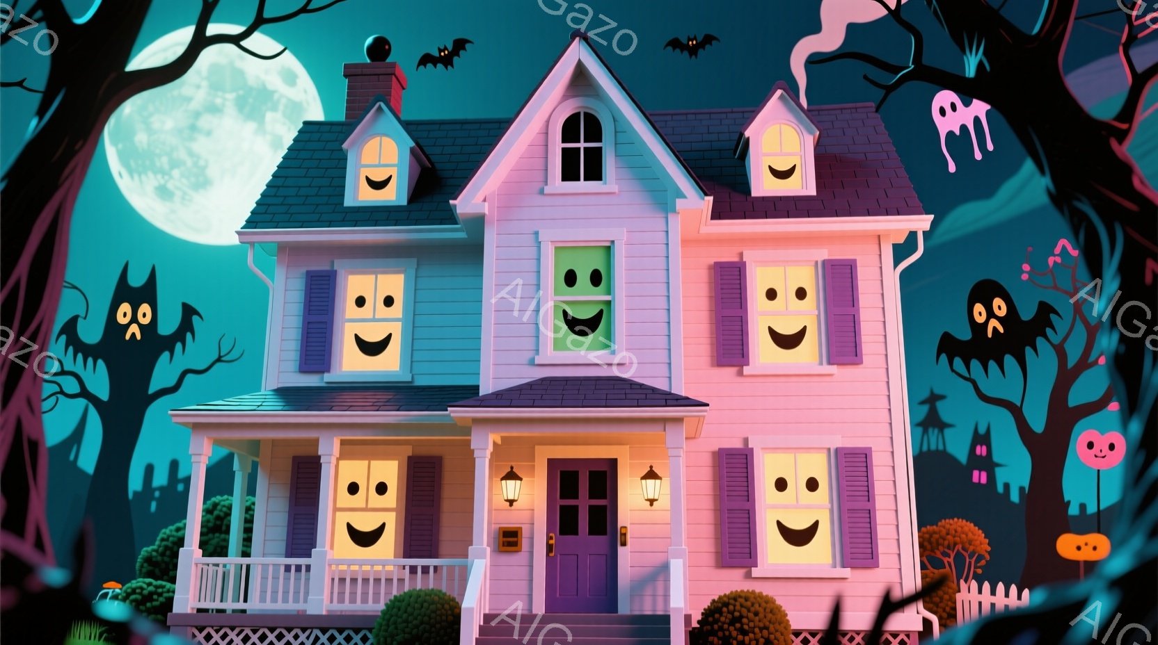 この無料AI生成画像「明るいオレンジ色のカボチャの頭を持つキャラクターが、紫色のシャツを着て立っています。周りには様々な大きさのジャック・オー・ランタンや、可愛らしい幽霊が配置され、背景には月夜の森が広がっています。全体的にハロウィンの楽しげで可愛らしい雰囲気が漂っています。」は、2025年10月22日に作成されました。 サイズは 1664×928px の高解像度で、商用利用も可能なフリー素材として提供しています。