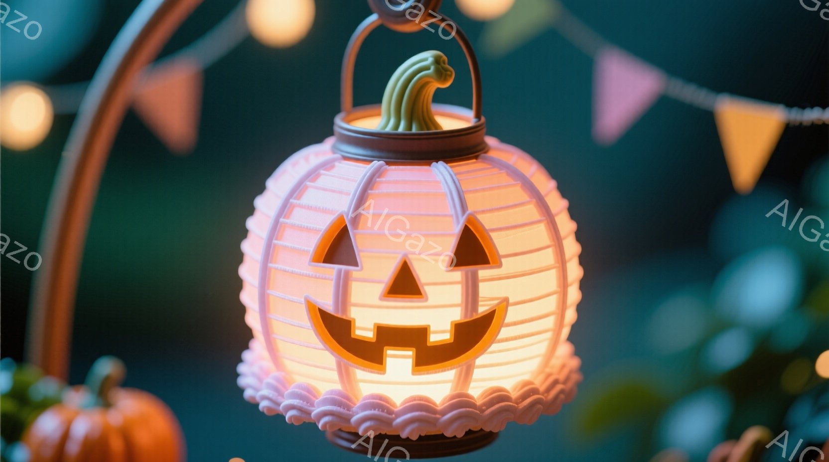 この無料AI生成画像「明るいオレンジ色の背景に、ハロウィーンのランタンがケーキの上に飾られています。ランタンはジャック・オー・ランタンのような顔をしており、温かい光を放っています。背景には、ぼやけた花やオレンジ色の実がぶら下がった枝があり、全体的に幻想的で楽しい雰囲気を醸し出しています。」は、2025年10月22日に作成されました。 サイズは 1664×928px の高解像度で、商用利用も可能なフリー素材として提供しています。