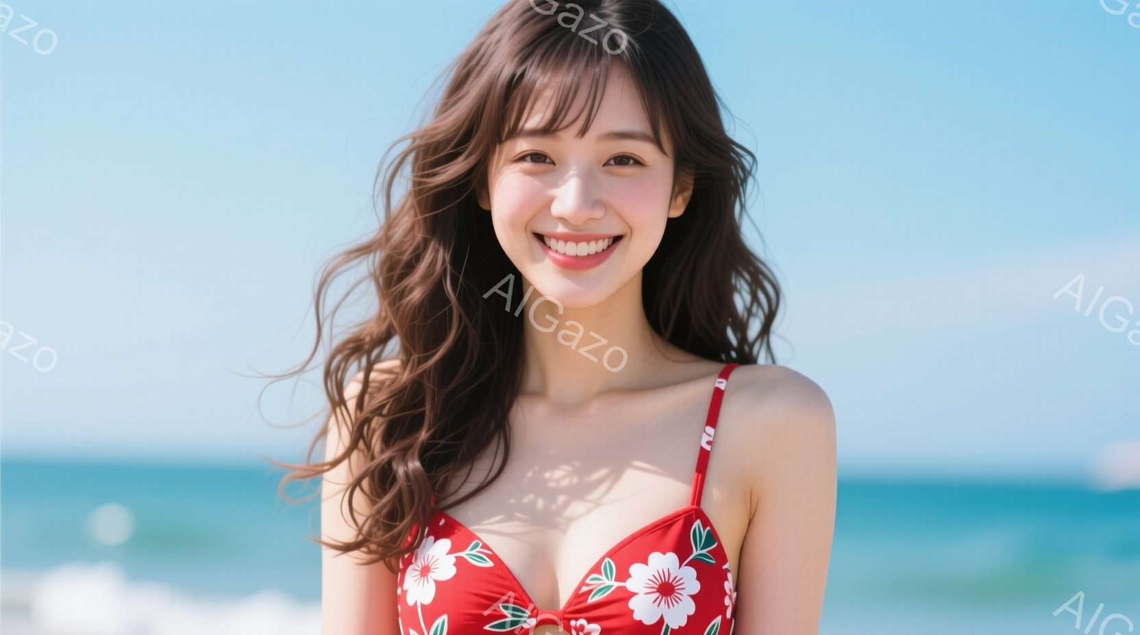 「明るい笑顔を浮かべた女性が写っています。赤い花柄のビキニトップとゆるやかなウェーブヘアが印象的で、太陽の下でリラックスした雰囲気を醸し出しています。背景には青い」は、2025年11月26日に作成されたAI生成画像です。 アウトドアをテーマとした高品質なビジュアル素材で、 1664×928px の解像度で提供しています。 個人利用・商用利用ともに無料でダウンロード可能で、クレジット表記も不要です。