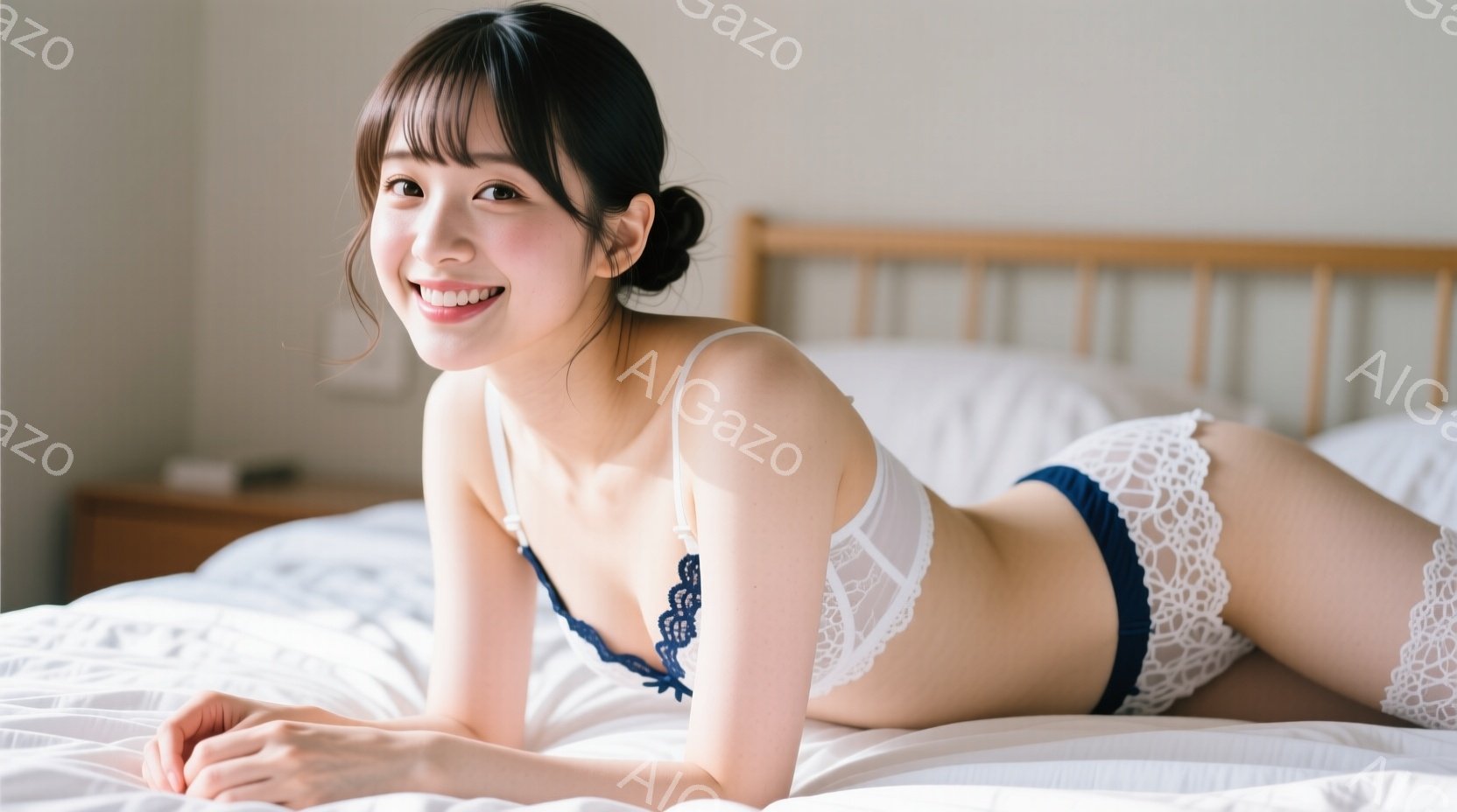 「黒髪の女性がクリーム色のソファーに座っており、ネイビーブルーのレースがアクセントの白いランジェリーを着用しています。彼女は正面を見つめ、穏やかで控えめな表情を浮」は、2025年11月27日に作成されたAI生成画像です。 ソファーをテーマとした高品質なビジュアル素材で、 1664×928px の解像度で提供しています。 個人利用・商用利用ともに無料でダウンロード可能で、クレジット表記も不要です。