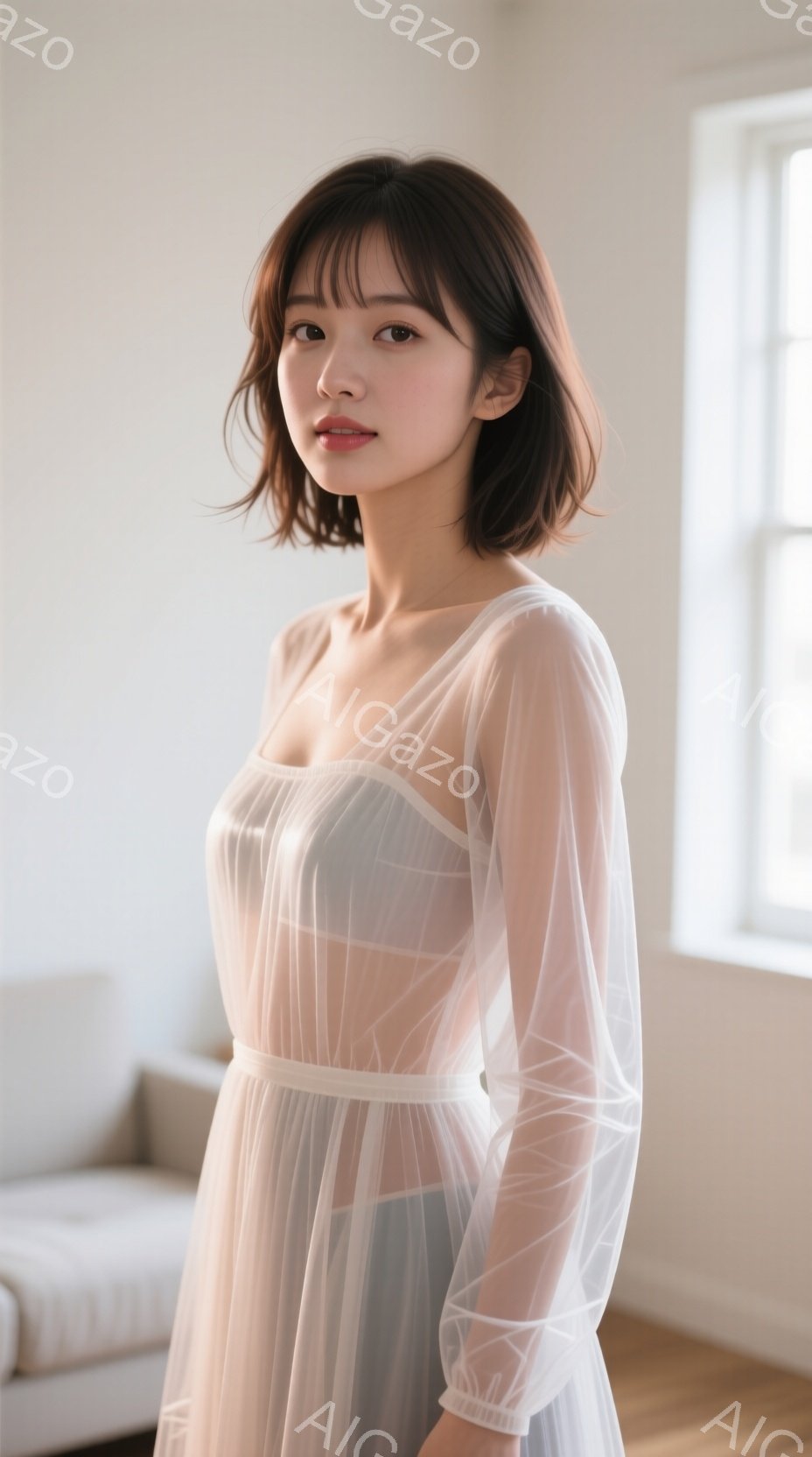 「この女性は、ベージュのカーディガンと白いインナーを着て、肩までの長さの黒髪をしています。彼女はわずかに微笑んでおり、穏やかで優しい表情をしています。背景はぼやけ」は、2025年11月28日に作成されたAI生成画像です。 カーディガンをテーマとした高品質なビジュアル素材で、 928×1664px の解像度で提供しています。 個人利用・商用利用ともに無料でダウンロード可能で、クレジット表記も不要です。