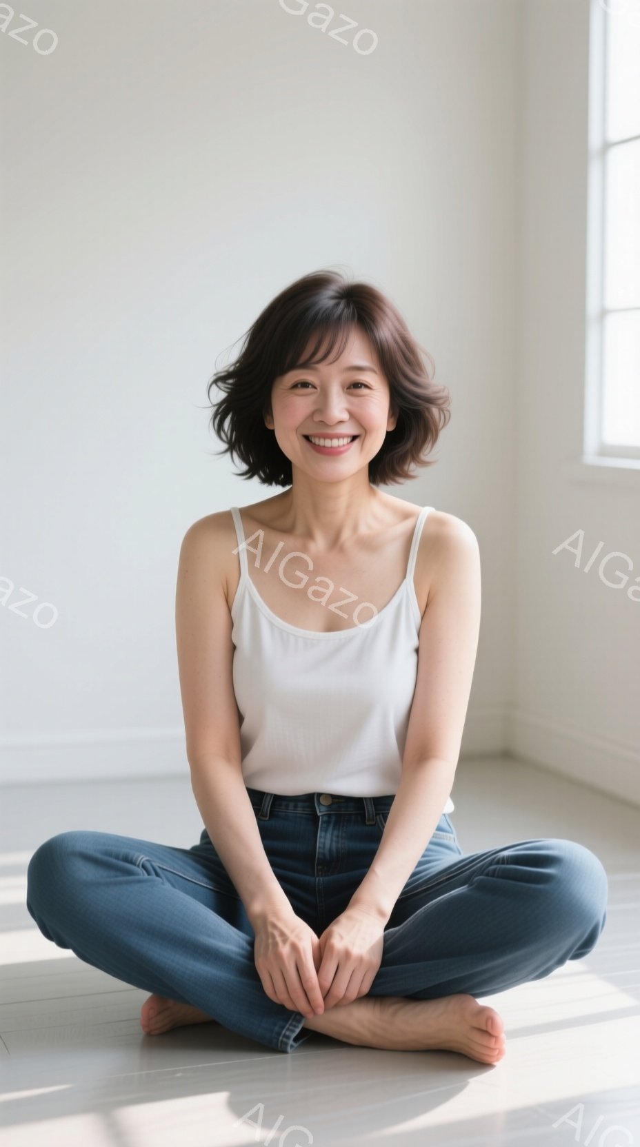 「長い黒髪で、前髪が眉毛にかかるようにカットされた若い女性が写っています。白いセーターを着ており、表情は穏やかで、少し微笑んでいるように見えます。背景はぼやけてお」は、2025年11月28日に作成されたAI生成画像です。 カジュアルをテーマとした高品質なビジュアル素材で、 928×1664px の解像度で提供しています。 個人利用・商用利用ともに無料でダウンロード可能で、クレジット表記も不要です。