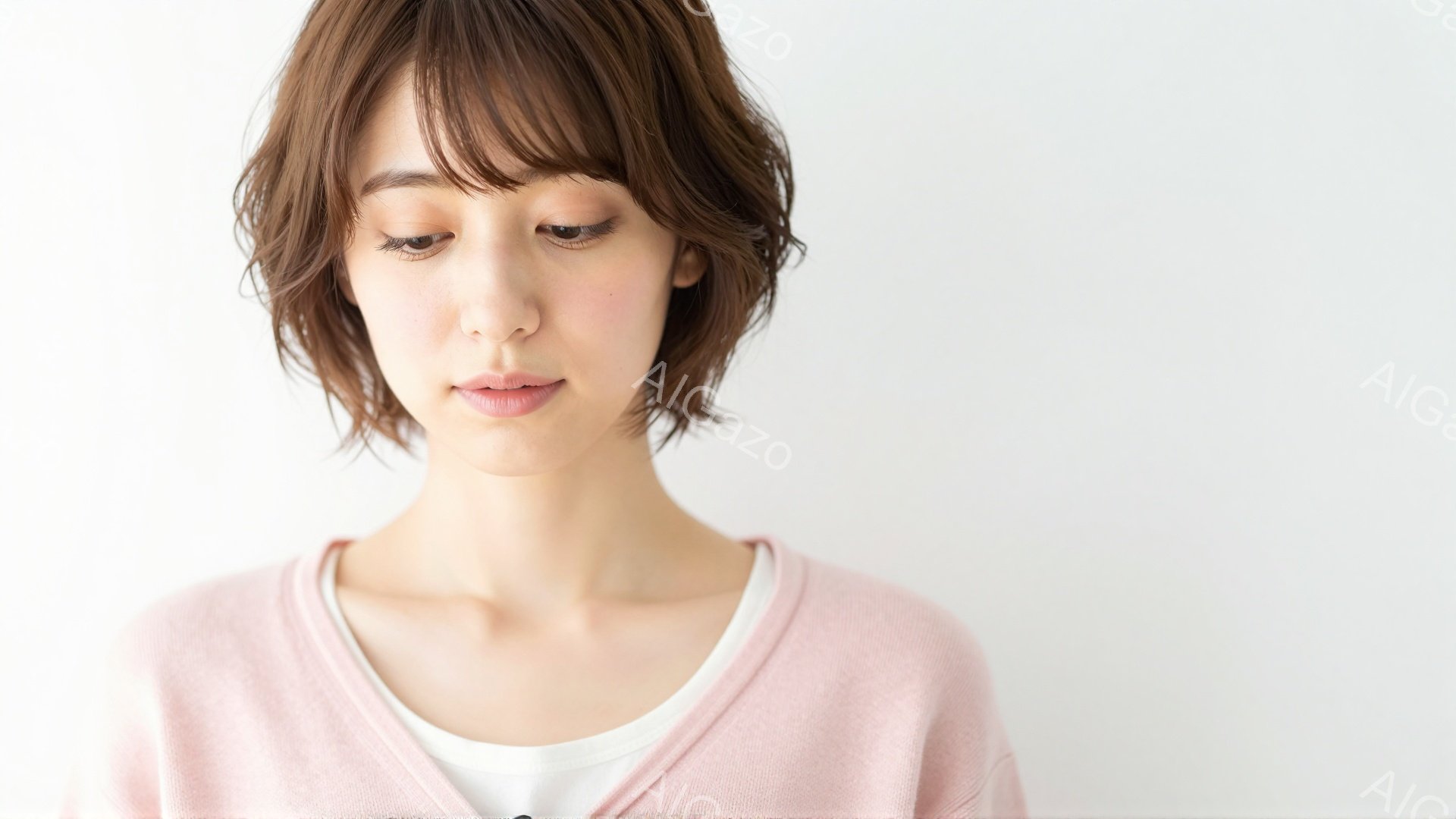「画像は、薄いピンク色のカーディガンに白いインナーを着た若い女性のポートレートです。彼女は短めのボブヘアで、少し微笑んだ表情をしています。背景は白く、女性が際立っ」は、2025年11月28日に作成されたAI生成画像です。 おしゃれをテーマとした高品質なビジュアル素材で、 1920×1080px の解像度で提供しています。 個人利用・商用利用ともに無料でダウンロード可能で、クレジット表記も不要です。