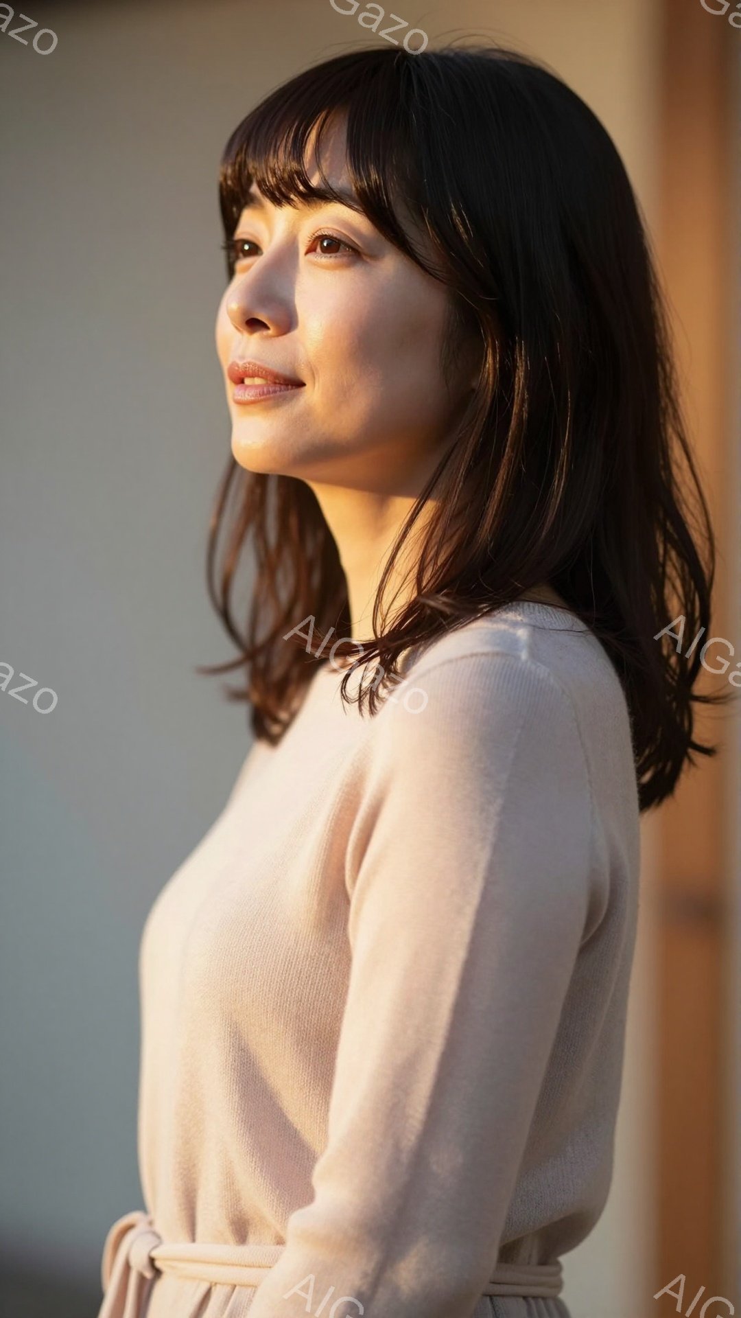 「この女性は、クリーム色のセーターを着て、肩を少し内側に寄せた姿勢で、右を向いています。彼女の髪は肩の長さで、ゆるやかにカールしており、表情は穏やかで、どこか物憂」は、2025年11月28日に作成されたAI生成画像です。 カールヘアをテーマとした高品質なビジュアル素材で、 1080×1920px の解像度で提供しています。 個人利用・商用利用ともに無料でダウンロード可能で、クレジット表記も不要です。