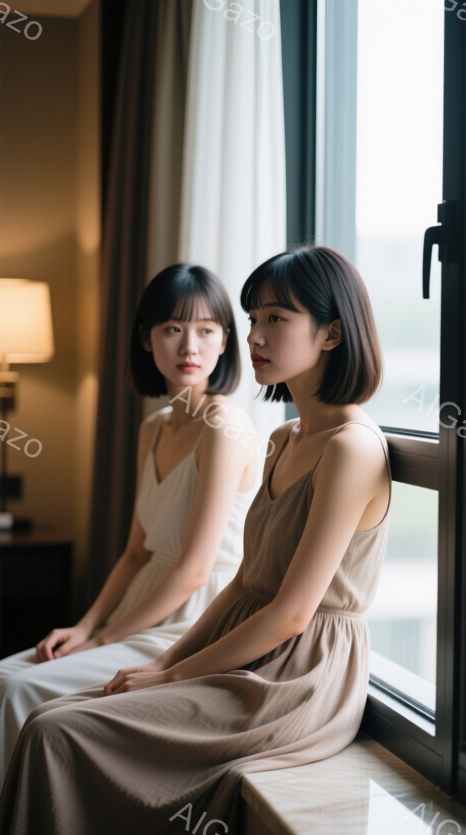 「光沢のある白いランジェリー姿の女性が、大きな窓のそばに立っています。彼女はストレートの黒髪で、少し微笑んでいます。背景には、ぼやけた都市の風景が見え、部屋は明る」は、2025年11月28日に作成されたAI生成画像です。 インテリアをテーマとした高品質なビジュアル素材で、 928×1664px の解像度で提供しています。 個人利用・商用利用ともに無料でダウンロード可能で、クレジット表記も不要です。