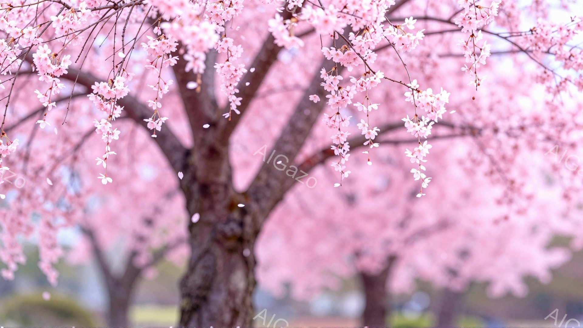 「桜の木が画面いっぱいに咲き誇り、薄桃色の花びらが舞い散っている様子が捉えられている。幹は力強くねじれており、背景にはぼやけた緑色の芝生と遠くの木々が見える。穏や」は、2025年12月03日に作成されたAI生成画像です。 エーテルをテーマとした高品質なビジュアル素材で、 1920×1080px の解像度で提供しています。 個人利用・商用利用ともに無料でダウンロード可能で、クレジット表記も不要です。