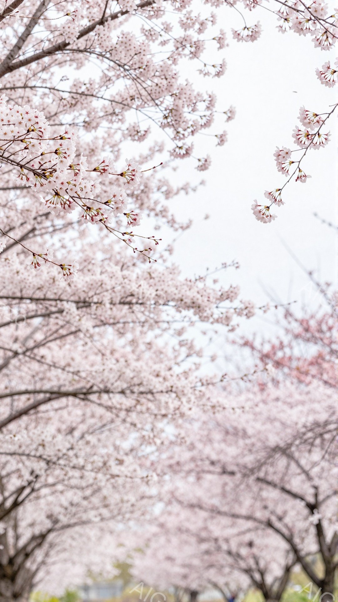 「桜並木が続く道が写っており、満開の桜の花びらが空を覆うように咲き誇っている。道の奥には数人の人々が見え、散歩を楽しんでいる様子が伺えるが、詳細は不明である。全体」は、2025年12月04日に作成されたAI生成画像です。 シーズンをテーマとした高品質なビジュアル素材で、 1080×1920px の解像度で提供しています。 個人利用・商用利用ともに無料でダウンロード可能で、クレジット表記も不要です。