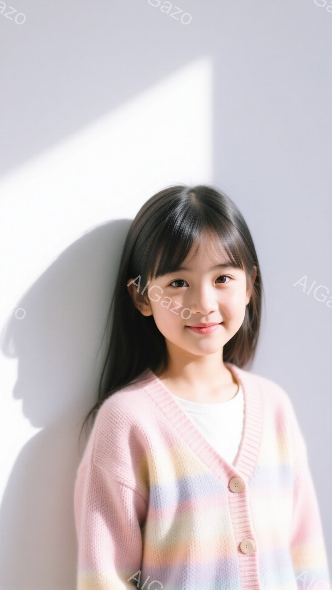 「若い女性が、パステルカラーのカーディガンを着て、壁にもたれて立っています。彼女は長い黒髪で、少し微笑んでおり、穏やかで優しい表情をしています。背景は白く、光が壁」は、2025年12月04日に作成されたAI生成画像です。 カーディガンをテーマとした高品質なビジュアル素材で、 1080×1920px の解像度で提供しています。 個人利用・商用利用ともに無料でダウンロード可能で、クレジット表記も不要です。