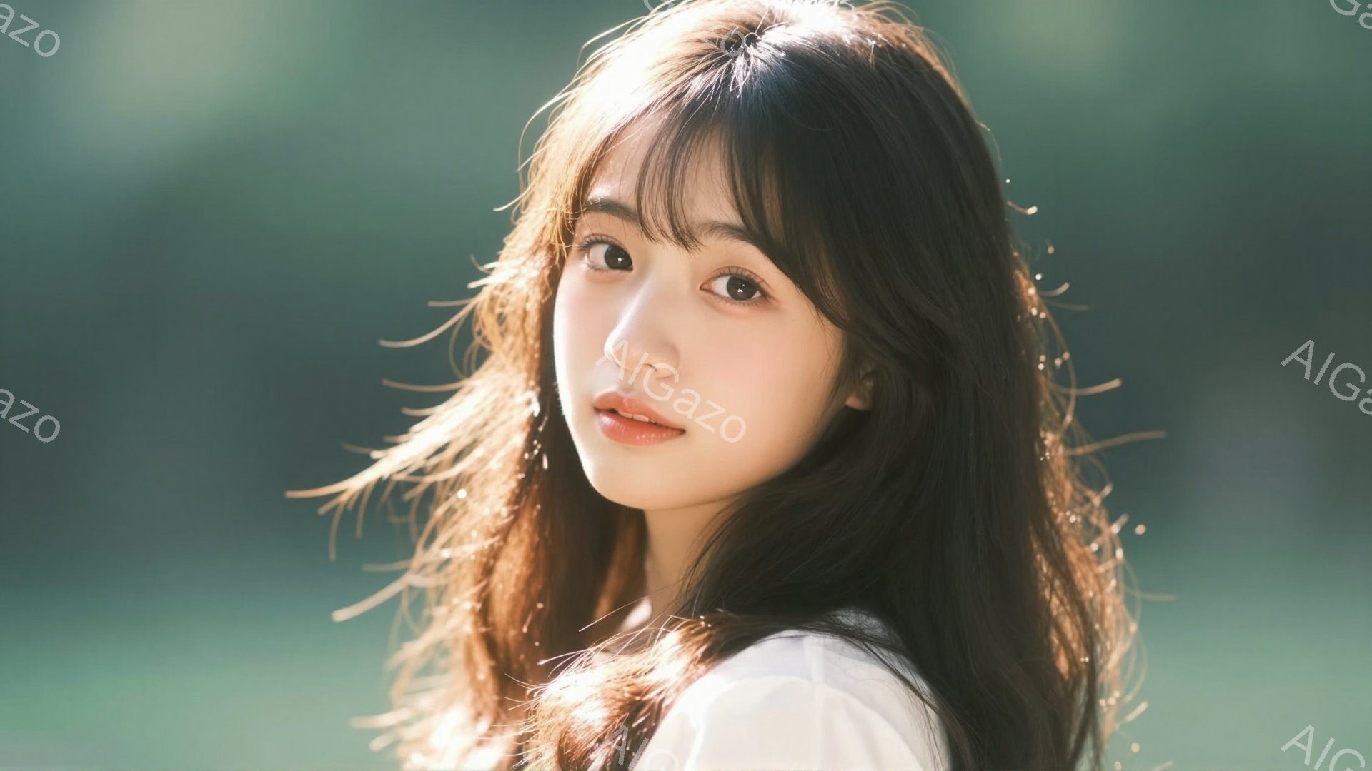 「長いダークブラウンの髪は肩にかかり、前髪が少し目にかかっています。彼女は白いトップスを着ており、わずかに微笑んでいて、穏やかな表情をしています。背景は緑のぼやけ」は、2025年12月04日に作成されたAI生成画像です。 ダークブラウンヘアをテーマとした高品質なビジュアル素材で、 1920×1080px の解像度で提供しています。 個人利用・商用利用ともに無料でダウンロード可能で、クレジット表記も不要です。