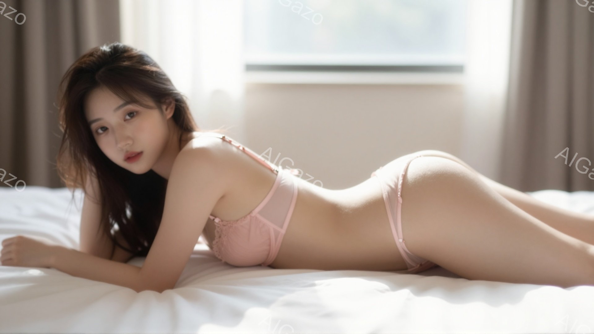 「深い青色のブラとショーツを身に着けた女性が写っています。彼女はストレートな黒髪で、穏やかな表情を浮かべています。背景には白いカーテンが並び、柔らかい光が差し込ん」は、2025年12月04日に作成されたAI生成画像です。 カーテンをテーマとした高品質なビジュアル素材で、 1920×1080px の解像度で提供しています。 個人利用・商用利用ともに無料でダウンロード可能で、クレジット表記も不要です。