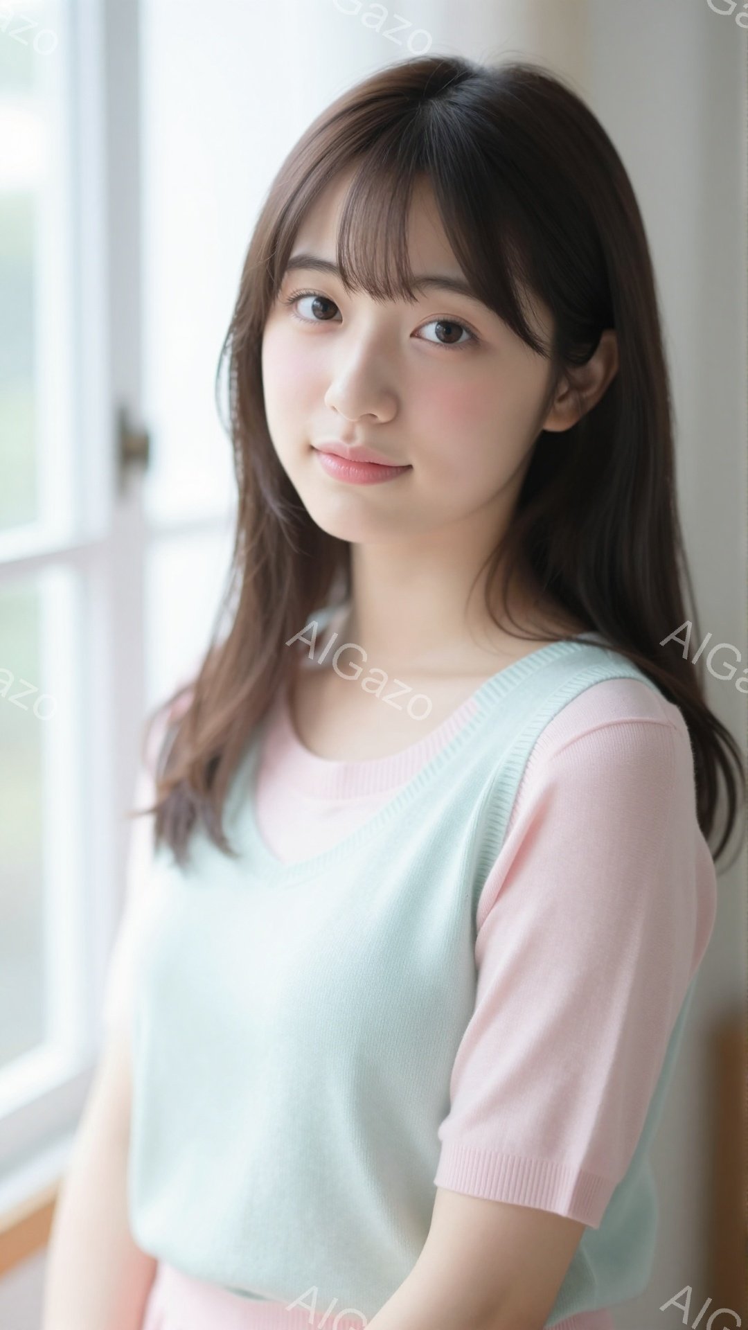 「若い女性が窓枠に座り、膝を抱えています。白いTシャツとグレーのショートパンツというカジュアルな服装で、素足です。穏やかな表情で微笑んでおり、背景はぼやけた室内で」は、2025年12月04日に作成されたAI生成画像です。 カジュアルをテーマとした高品質なビジュアル素材で、 1080×1920px の解像度で提供しています。 個人利用・商用利用ともに無料でダウンロード可能で、クレジット表記も不要です。