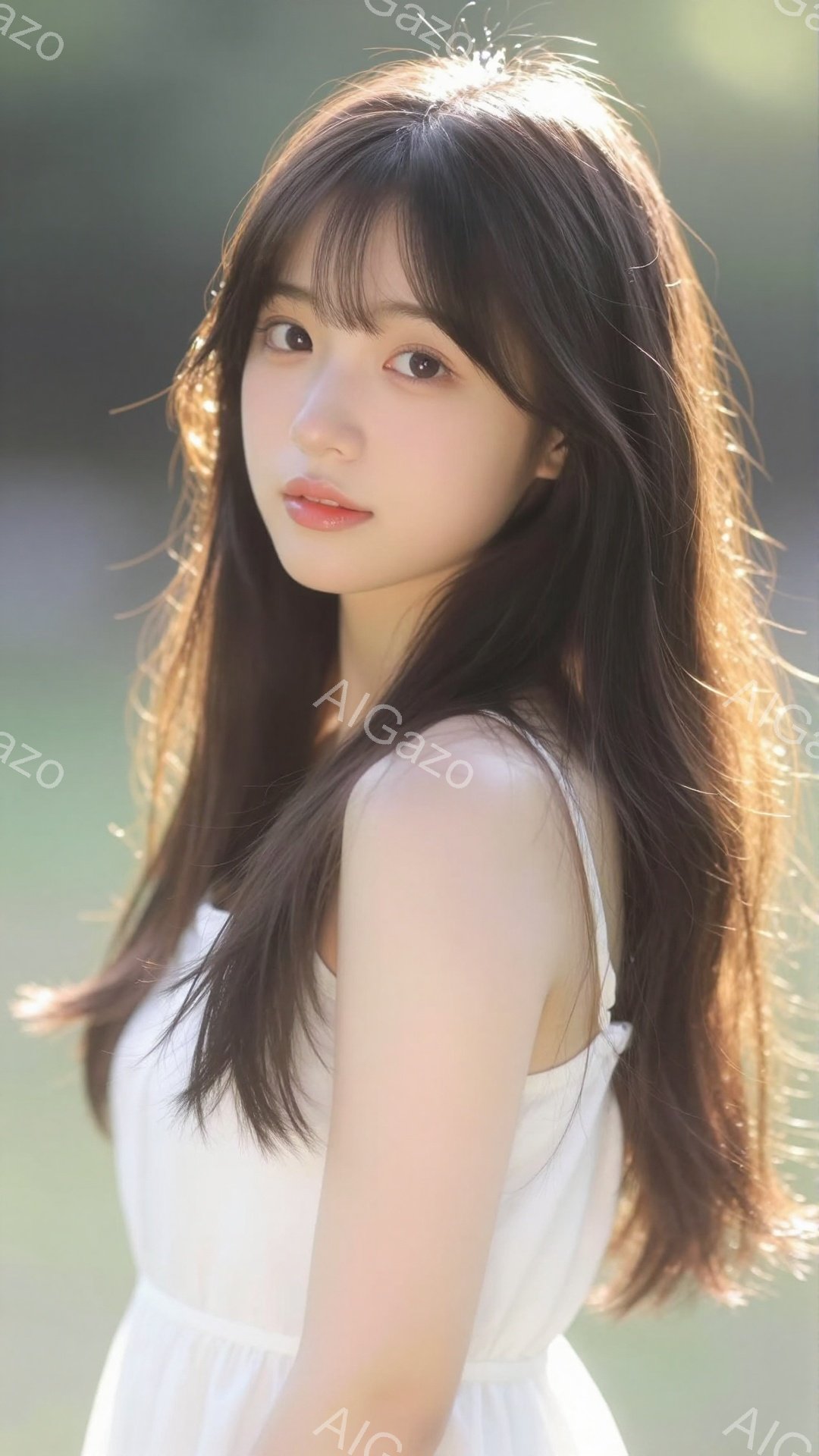 「長い茶色の髪を持つ若い女性が、白いキャミソールドレスを着て正面を向いています。彼女はわずかに微笑んでおり、姿勢はリラックスしています。背景は緑豊かな自然で、ぼや」は、2025年12月04日に作成されたAI生成画像です。 キャミソールドレスをテーマとした高品質なビジュアル素材で、 1080×1920px の解像度で提供しています。 個人利用・商用利用ともに無料でダウンロード可能で、クレジット表記も不要です。