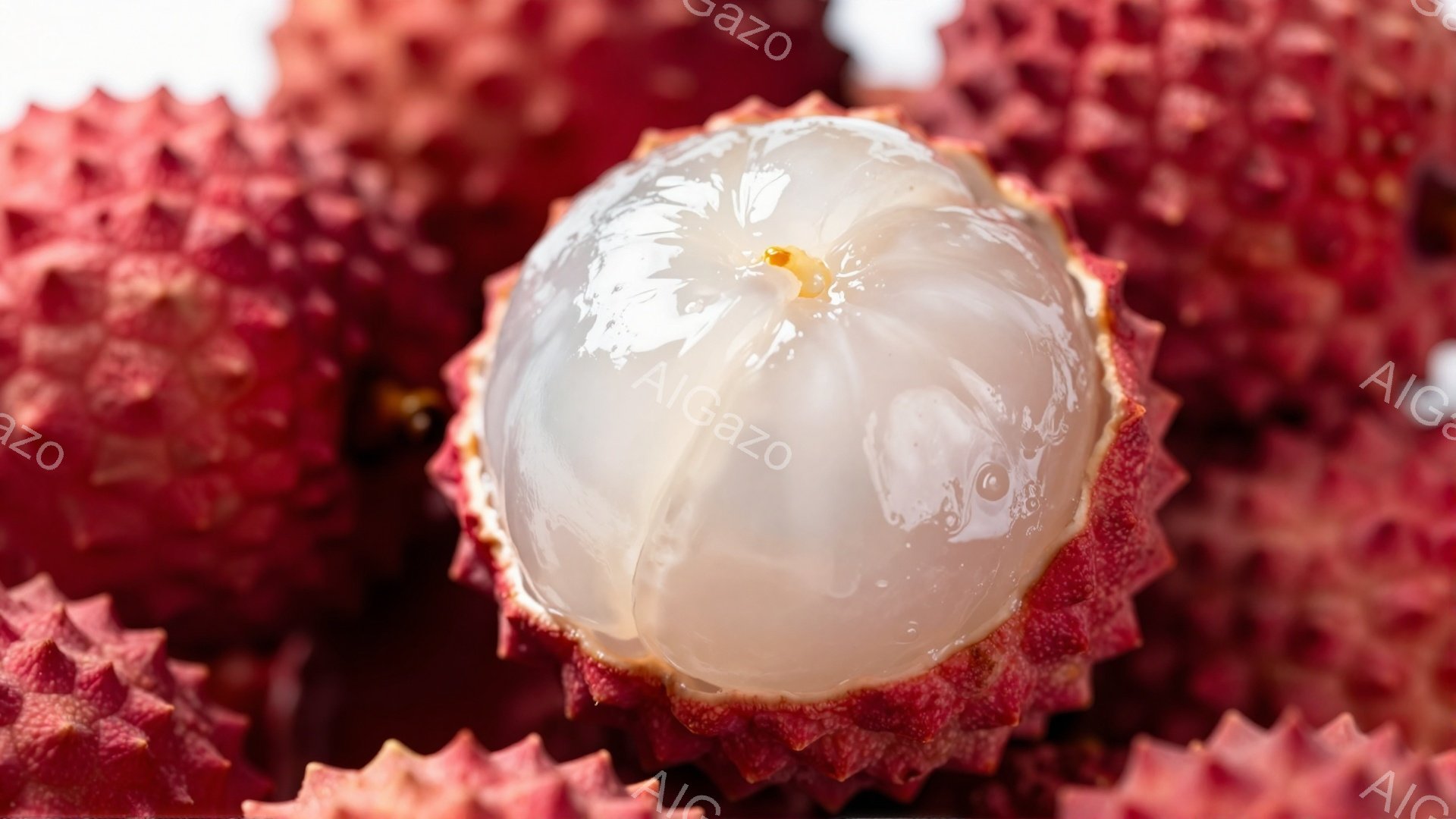 「ライチの実がいくつか、白い皿の上に置かれています。ひとつは皮が剥がれて中身の白い果肉が見えており、みずみずしさを感じさせます。鮮やかな赤色の皮と白く半透明の果肉」は、2025年12月07日に作成されたAI生成画像です。 グルメをテーマとした高品質なビジュアル素材で、 1920×1080px の解像度で提供しています。 個人利用・商用利用ともに無料でダウンロード可能で、クレジット表記も不要です。