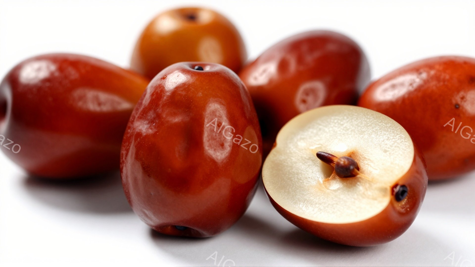 「鮮やかな赤褐色のナツメが、白い皿の上にぎっしりと並んでいます。一つだけ半分に切られており、淡い黄色い果肉と種が見えます。全体的に、みずみずしく、自然の恵みを感じ」は、2025年12月07日に作成されたAI生成画像です。 плодородиеをテーマとした高品質なビジュアル素材で、 1920×1080px の解像度で提供しています。 個人利用・商用利用ともに無料でダウンロード可能で、クレジット表記も不要です。