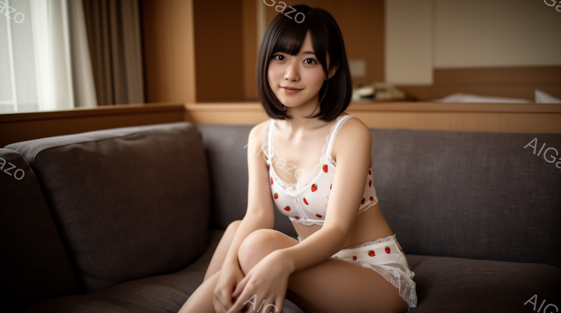 「モデルは、淡いブルー地にイチゴ柄のブラとショーツを身に着け、ベッドの上に座っています。彼女は黒髪のロングヘアで、穏やかな表情でカメラを見つめています。背景は白く」は、2025年12月07日に作成されたAI生成画像です。 イチゴ柄をテーマとした高品質なビジュアル素材で、 1920×1072px の解像度で提供しています。 個人利用・商用利用ともに無料でダウンロード可能で、クレジット表記も不要です。