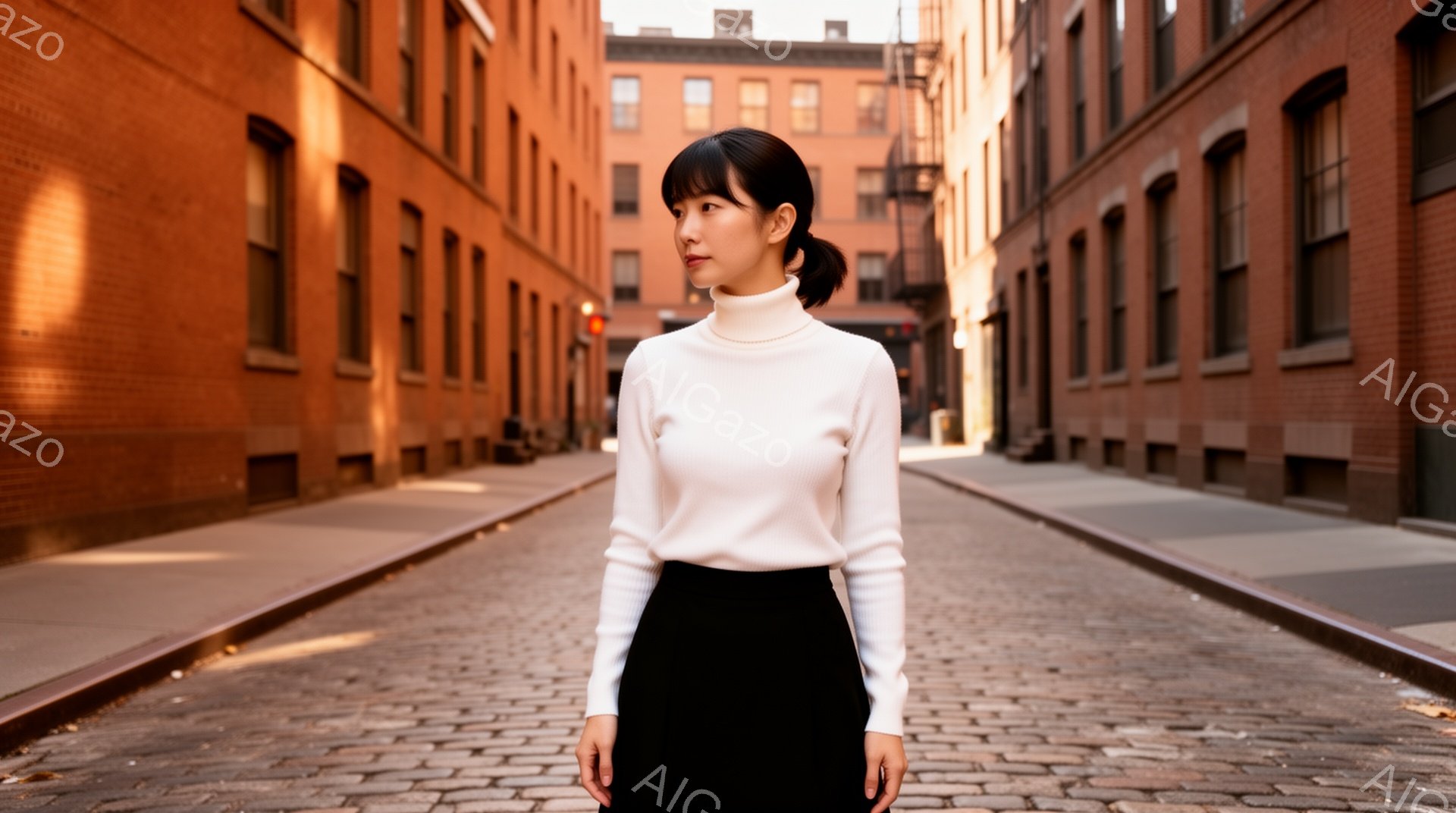 「長い黒髪で前髪を作った女性が、ベージュ色のブラウスとスカートを身につけ、穏やかな表情で正面を見つめている。背景には、運河とゴンドラが並び、夕暮れ時のオレンジ色の」は、2025年12月07日に作成されたAI生成画像です。 ヴェネツィアをテーマとした高品質なビジュアル素材で、 1920×1072px の解像度で提供しています。 個人利用・商用利用ともに無料でダウンロード可能で、クレジット表記も不要です。