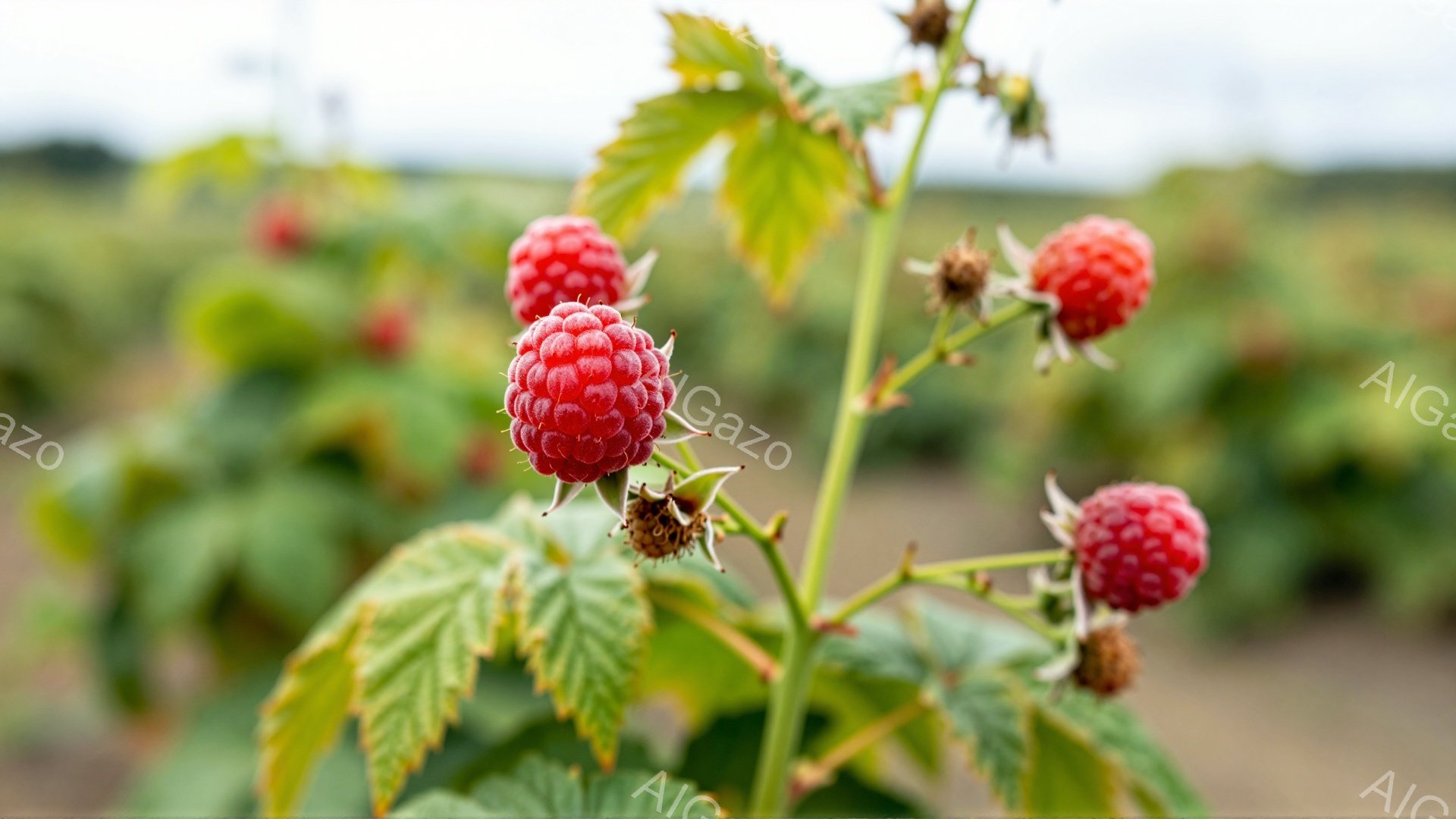 「鮮やかな赤いラズベリーが、緑の葉に囲まれて咲き誇っているクローズアップ写真です。背景には、ラズベリー畑が広がり、遠くにはぼんやりとした緑の景色が見えます。全体的」は、2025年12月08日に作成されたAI生成画像です。 クローズアップをテーマとした高品質なビジュアル素材で、 1920×1080px の解像度で提供しています。 個人利用・商用利用ともに無料でダウンロード可能で、クレジット表記も不要です。