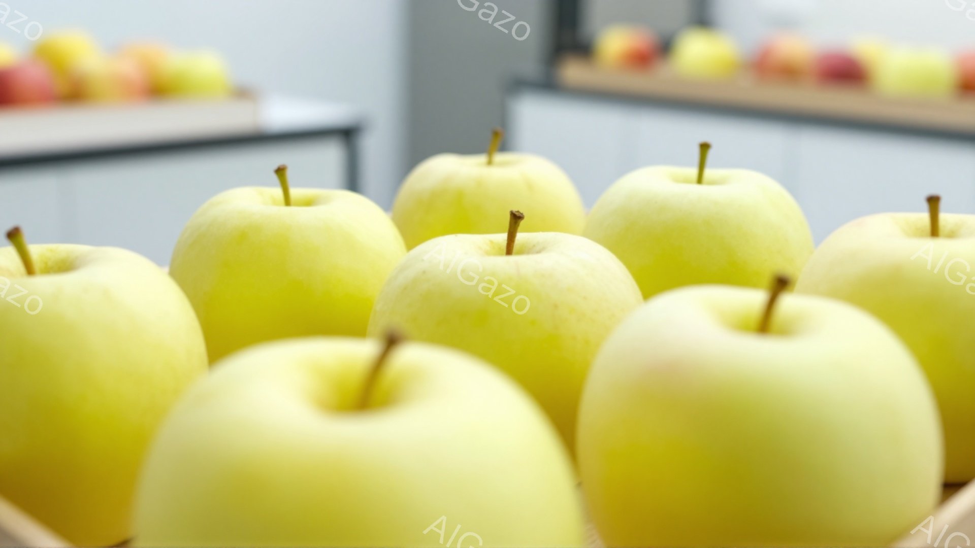 「鮮やかな黄緑色のリンゴが密集して並べられています。一部のリンゴには、ほんのり赤みが差し、多様な色合いが楽しめます。背景にはぼんやりと他の果物が見え、白いテーブル」は、2025年12月08日に作成されたAI生成画像です。 テーブルをテーマとした高品質なビジュアル素材で、 1920×1080px の解像度で提供しています。 個人利用・商用利用ともに無料でダウンロード可能で、クレジット表記も不要です。