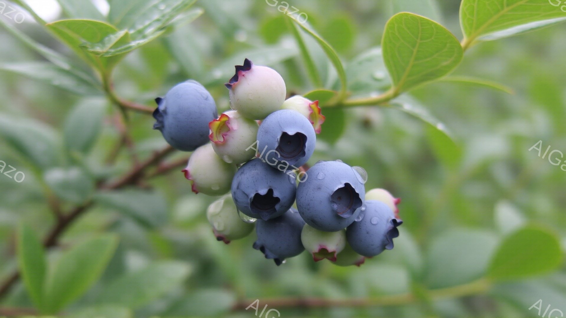 「鮮やかな青色のブルーベリーが枝に密集して実っています。まだ緑色の未熟な実と、熟して濃い青色になったものが混ざり合い、生命の躍動を感じさせます。背景には緑色の葉が」は、2025年12月09日に作成されたAI生成画像です。 фруктыをテーマとした高品質なビジュアル素材で、 1920×1080px の解像度で提供しています。 個人利用・商用利用ともに無料でダウンロード可能で、クレジット表記も不要です。