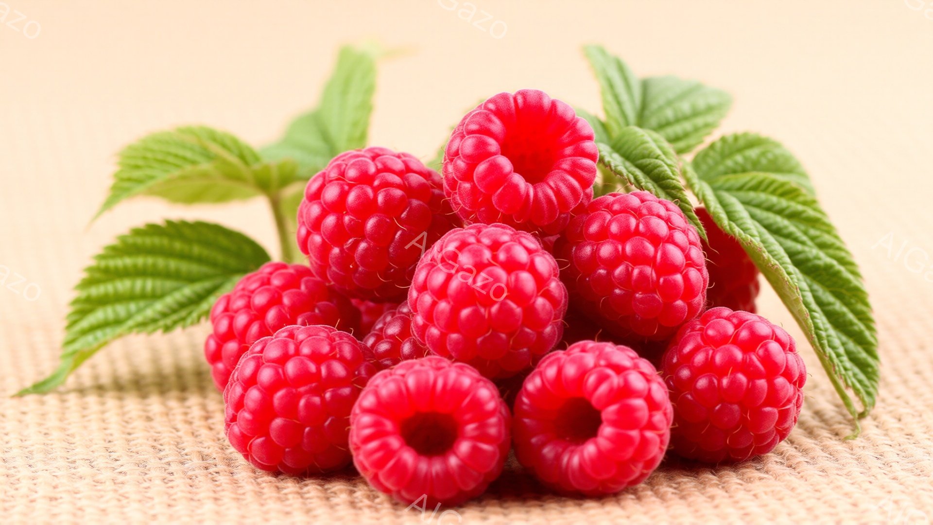 「鮮やかな赤色のラズベリーが、粗い麻布のような背景の上に集まって配置されている。葉っぱの緑色が、ラズベリーの赤色を引き立て、全体的に自然で新鮮な印象を与える。果実」は、2025年12月09日に作成されたAI生成画像です。 クローズアップをテーマとした高品質なビジュアル素材で、 1920×1080px の解像度で提供しています。 個人利用・商用利用ともに無料でダウンロード可能で、クレジット表記も不要です。
