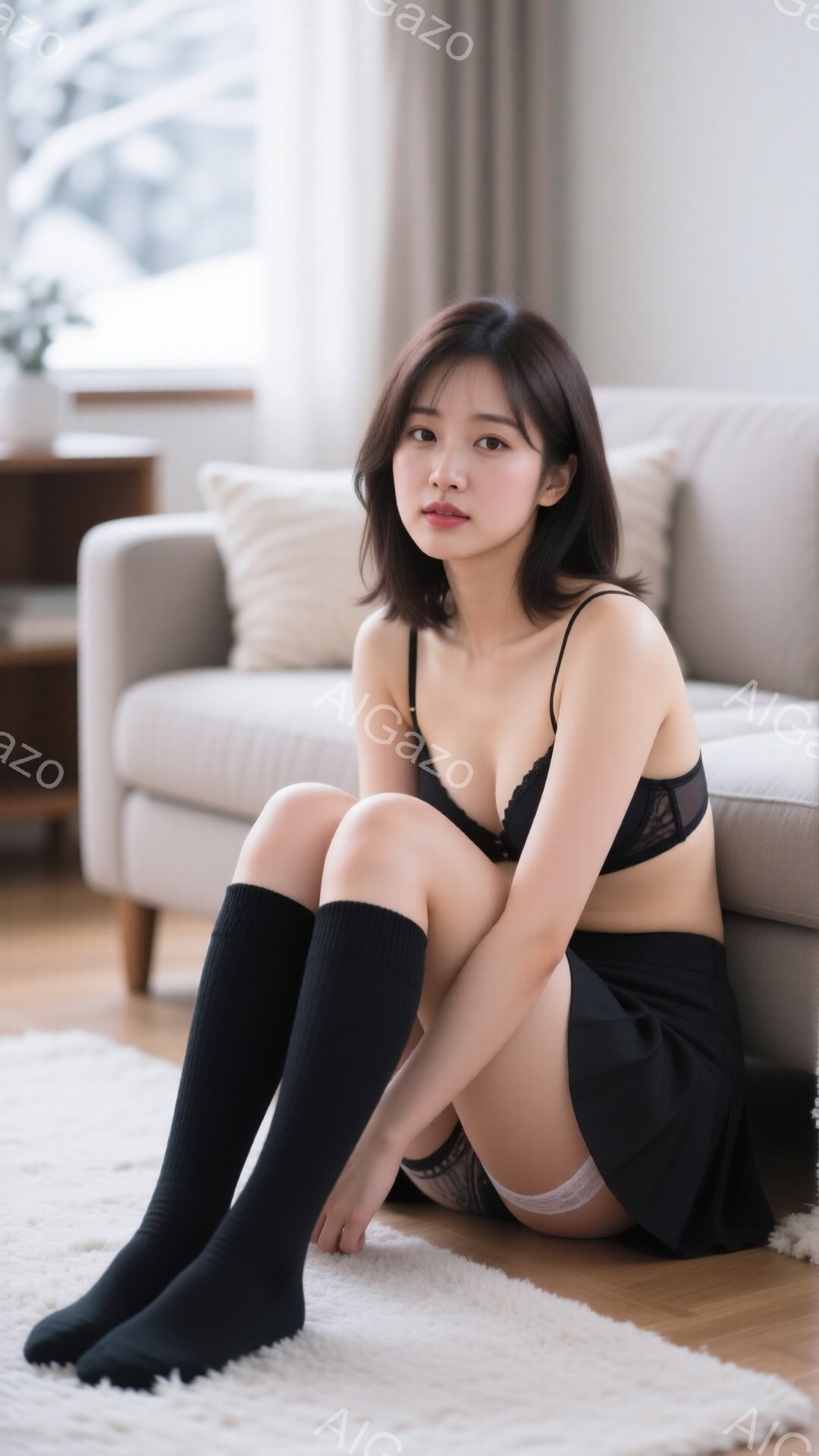 「明るい窓辺の椅子に座る若い女性が写っている。オフホワイトの透け感のあるブラウスと黒のミニスカート、黒のニーハイソックスを着用し、膝を抱えて微笑んでいる。背景には」は、2025年12月22日に作成されたAI生成画像です。 カジュアルをテーマとした高品質なビジュアル素材で、 1080×1920px の解像度で提供しています。 個人利用・商用利用ともに無料でダウンロード可能で、クレジット表記も不要です。