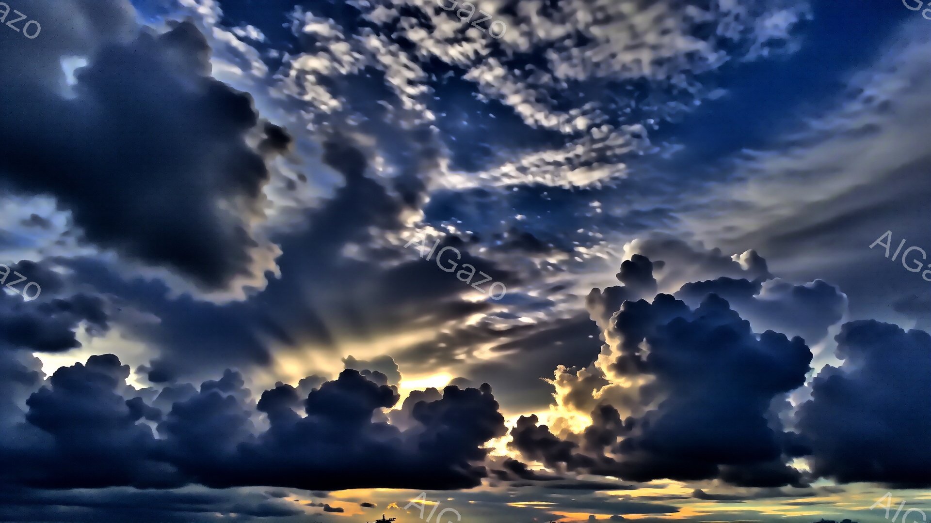 「濃い灰色の雲が空を覆い、重々しい雰囲気を作り出しています。雲の隙間からわずかに青い空が見え、薄明かりが差し込んでいます。そのコントラストは、嵐の前や嵐の後の静け」は、2025年12月22日に作成されたAI生成画像です。 コントラストをテーマとした高品質なビジュアル素材で、 1920×1080px の解像度で提供しています。 個人利用・商用利用ともに無料でダウンロード可能で、クレジット表記も不要です。