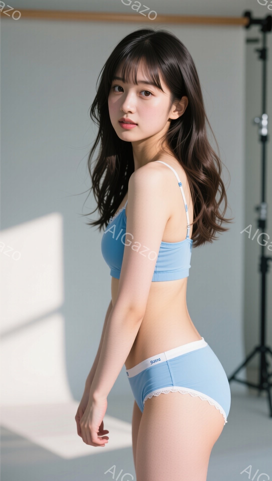「長い黒髪をツインテールにした若い女性が、パステルブルーのレース付きブラとショーツのセットアップを身につけて立っています。彼女はわずかに微笑んでおり、リラックスし」は、2025年12月23日に作成されたAI生成画像です。 インドアをテーマとした高品質なビジュアル素材で、 1088×1920px の解像度で提供しています。 個人利用・商用利用ともに無料でダウンロード可能で、クレジット表記も不要です。