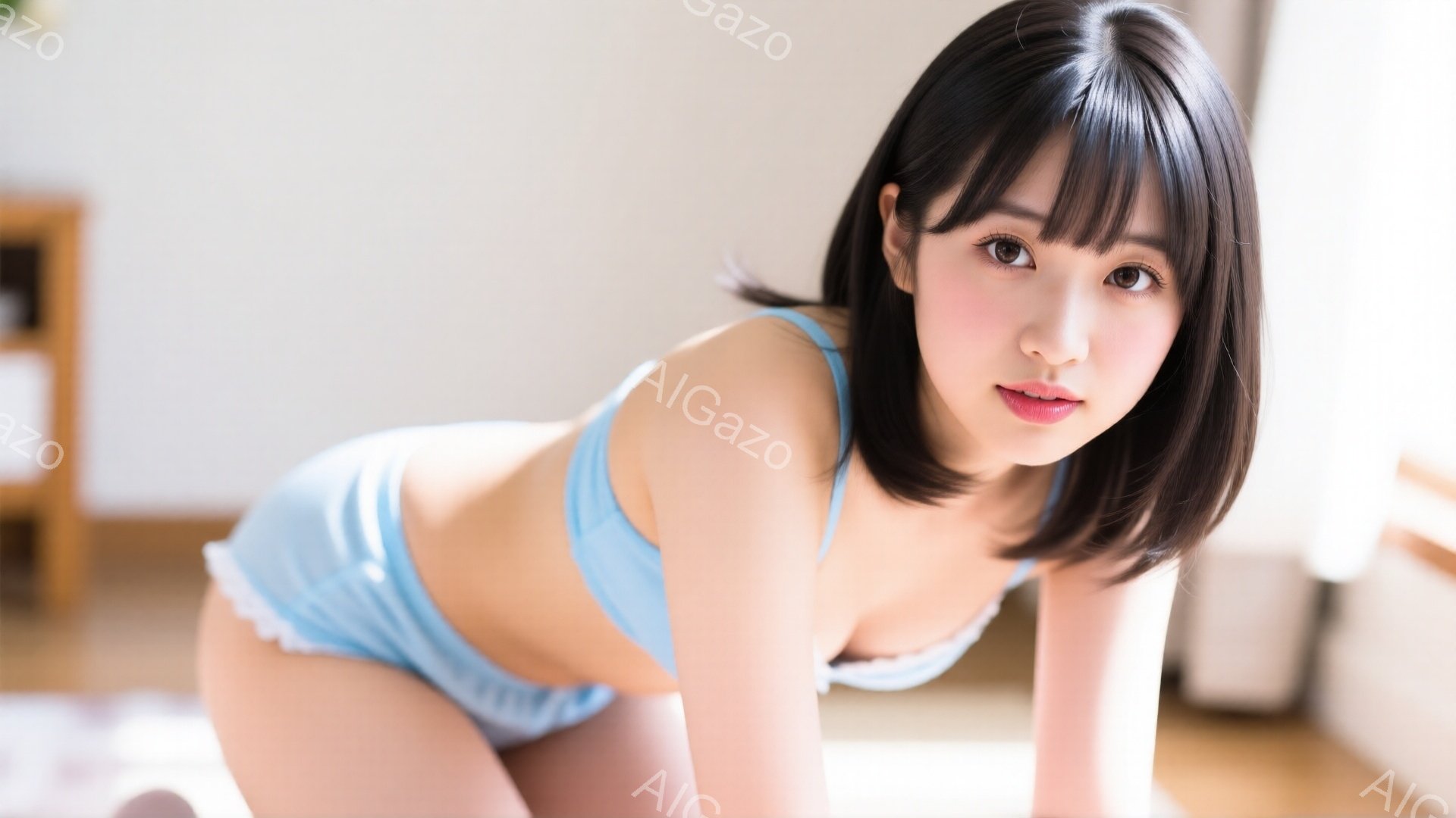 「長い黒髪を肩のあたりで分けており、前髪は眉毛にかかるようにカットされている。青い下着姿の女性が、白い背景の前にひざまずいており、カメラに向かって少し微笑んでいる」は、2025年12月24日に作成されたAI生成画像です。 スタジオをテーマとした高品質なビジュアル素材で、 1920×1080px の解像度で提供しています。 個人利用・商用利用ともに無料でダウンロード可能で、クレジット表記も不要です。