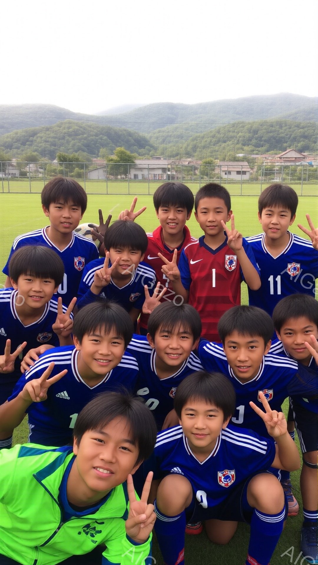 「サッカーユニフォームを着た少年たちが、緑の芝生の上に膝をついて整列しています。青いユニフォームの少年たちは笑顔で、それぞれ背中に数字が入っており、オレンジ色のユ」は、2026年01月02日に作成されたAI生成画像です。 サッカーをテーマとした高品質なビジュアル素材で、 1080×1920px の解像度で提供しています。 個人利用・商用利用ともに無料でダウンロード可能で、クレジット表記も不要です。