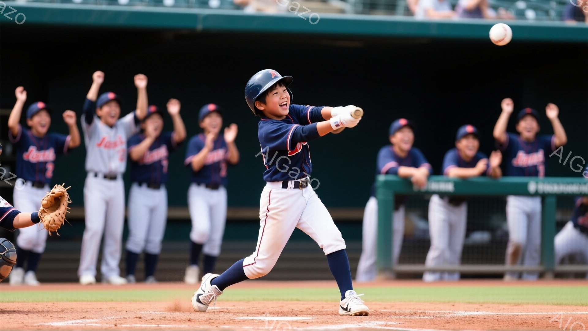 「少年の野球選手がバットを握り、集中した表情で下を向いている。ストライプのユニフォームとキャップを着用し、左手にはリストバンドをつけている。背景には他の選手たちが」は、2026年01月02日に作成されたAI生成画像です。 アウトドアをテーマとした高品質なビジュアル素材で、 1920×1080px の解像度で提供しています。 個人利用・商用利用ともに無料でダウンロード可能で、クレジット表記も不要です。
