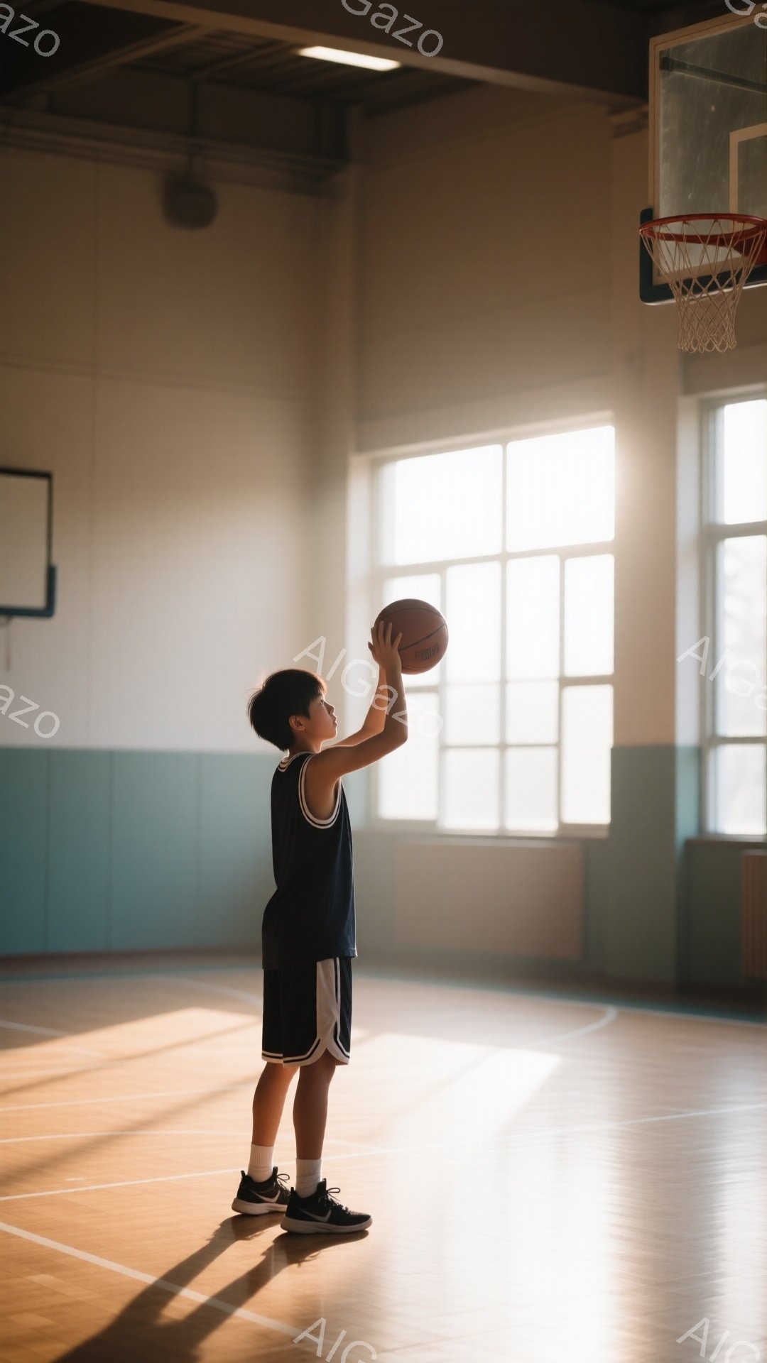 「少年はバスケットボールコートの中央に立ち、ドリブルしているボールを見下ろしています。紺色と白のユニフォーム、白いソックス、黒いスニーカーを着用し、短く刈り込まれ」は、2026年01月02日に作成されたAI生成画像です。 コートをテーマとした高品質なビジュアル素材で、 1080×1920px の解像度で提供しています。 個人利用・商用利用ともに無料でダウンロード可能で、クレジット表記も不要です。