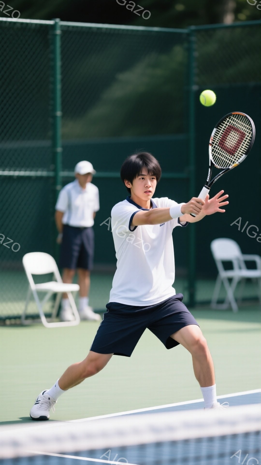 「テニスをする若い女性が写っています。白と紺のストライプのポロシャツと紺色のプリーツスカート、白いソックスとスニーカーを身に着け、髪は高い位置でポニーテールに結ば」は、2026年01月02日に作成されたAI生成画像です。 アクティブをテーマとした高品質なビジュアル素材で、 1080×1920px の解像度で提供しています。 個人利用・商用利用ともに無料でダウンロード可能で、クレジット表記も不要です。