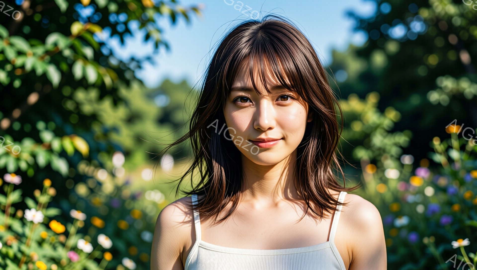 「彼女は花壇を背景に、穏やかな表情で正面を見つめています。茶色の髪は肩にかかる長さで、軽めのレイヤーがかかっています。ベージュ色のカーディガンに白いインナーを着て」は、2026年01月04日に作成されたAI生成画像です。 カーディガンをテーマとした高品質なビジュアル素材で、 1920×1088px の解像度で提供しています。 個人利用・商用利用ともに無料でダウンロード可能で、クレジット表記も不要です。